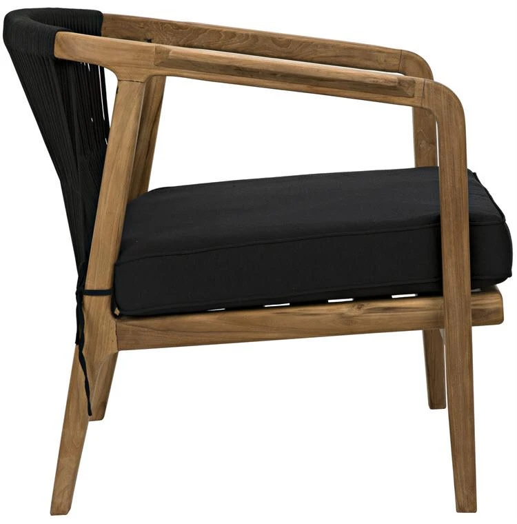 This contemporary teak chair is accented with a soft cotton back and cushioned seat. The wood is minimally finished to celebrate the tone and luster of its materials. The chair is casual, but upscale and contemporary, and an easy choice for any modern d_cor.