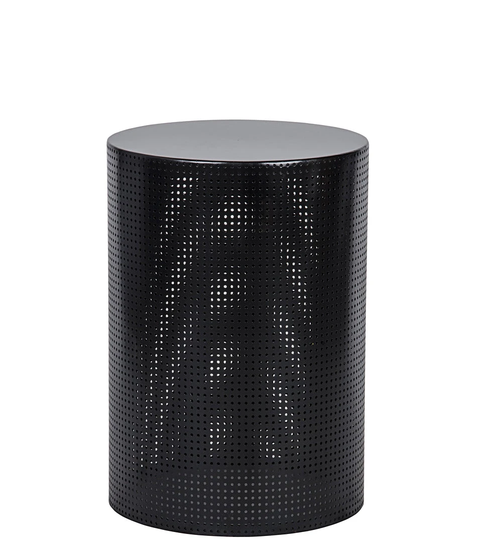 A cylinder of metal, perforated. Slightly austere in its simplicity, this versatile accent table is available in two sizes and your choice of finish, black or a warm antiqued brass.