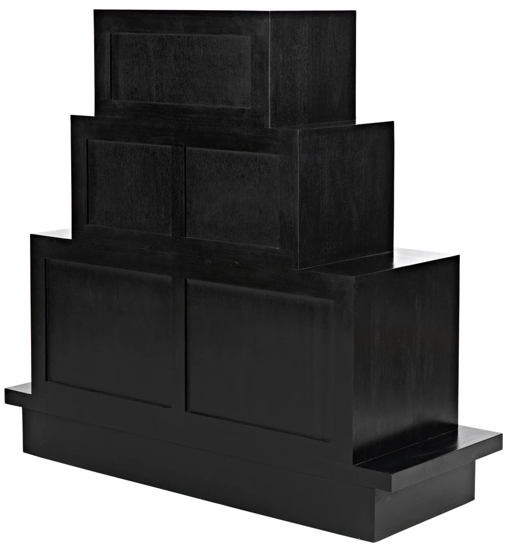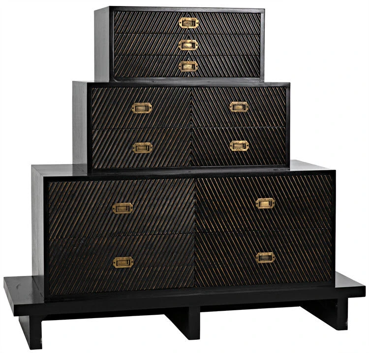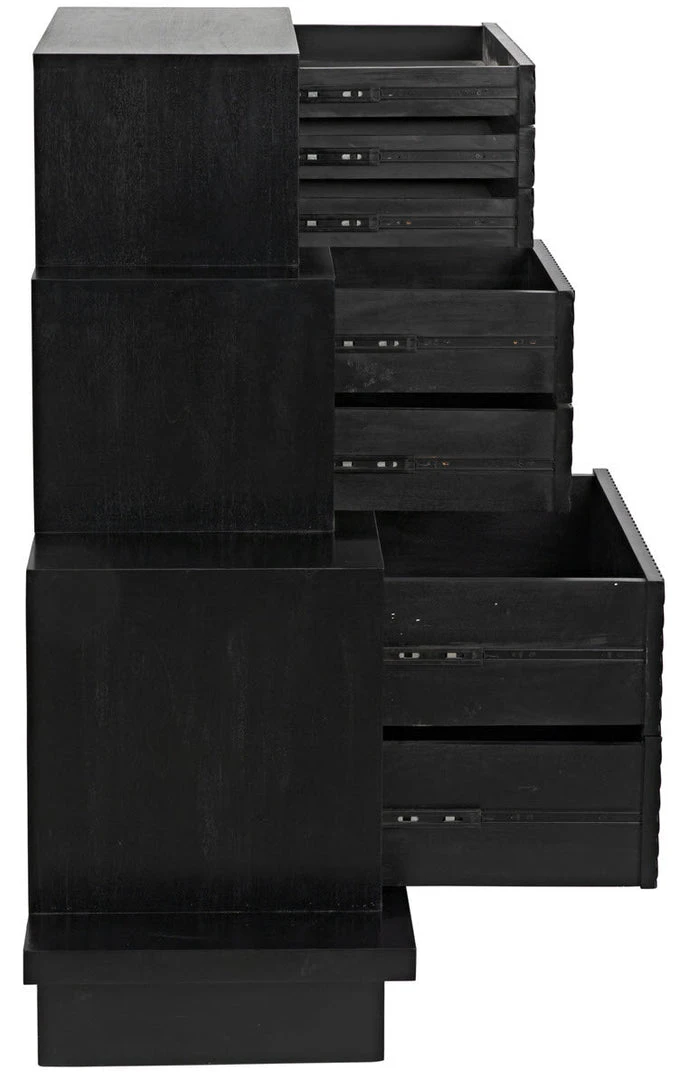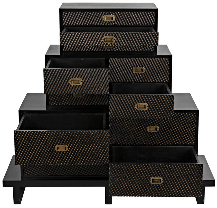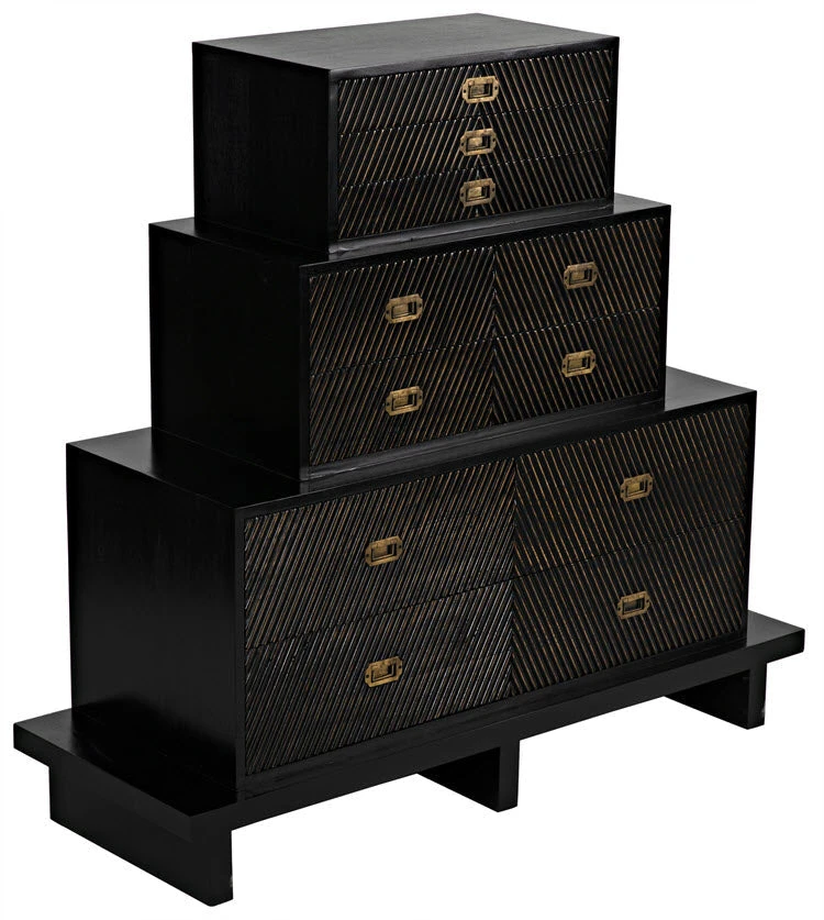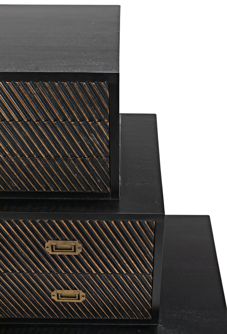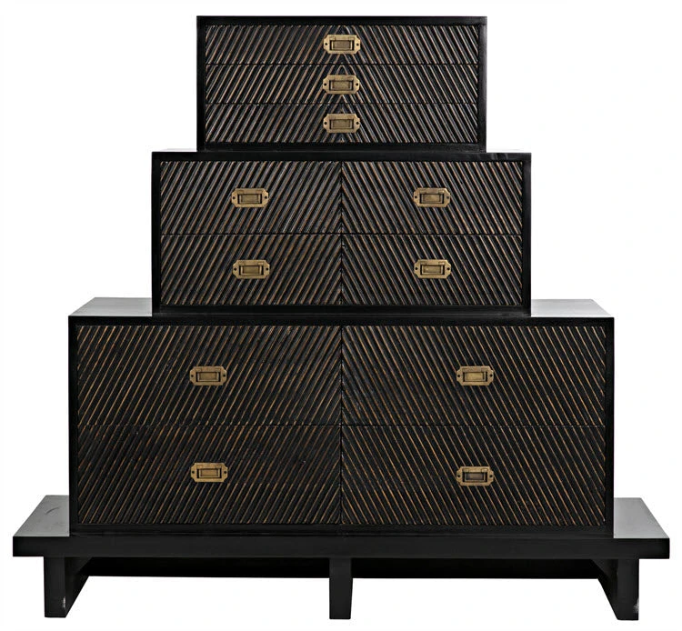 Noir Horus 3-Tier Dresser, Hand Rubbed Black With Light Brown Highlights Chests & Cabinets