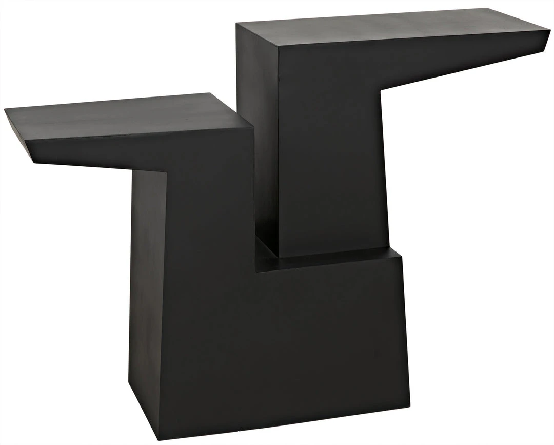 This pared down console is the essence of simplicity. Handcrafted of metal with a deep black finish, it is sleek, sophisticated, and very contemporary.