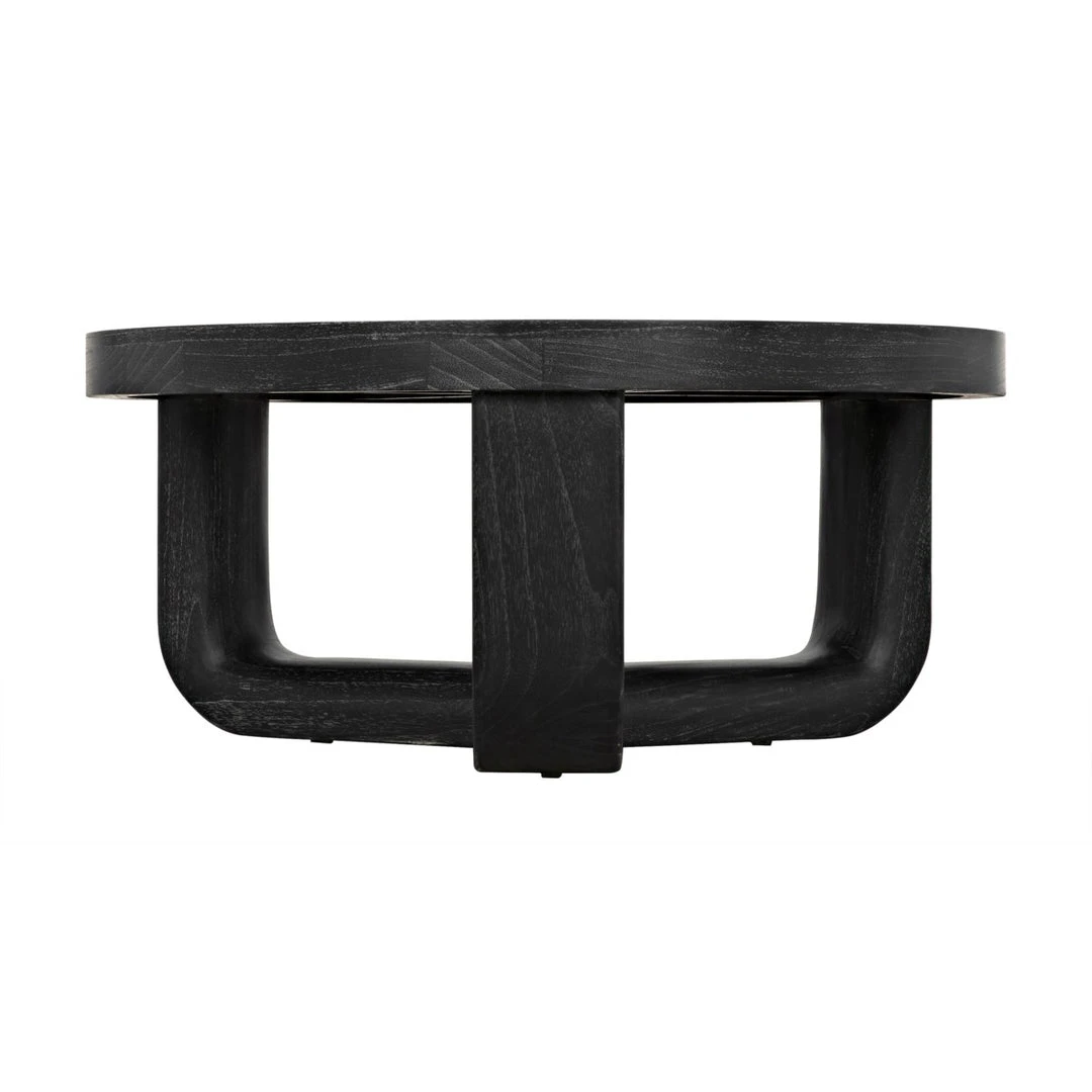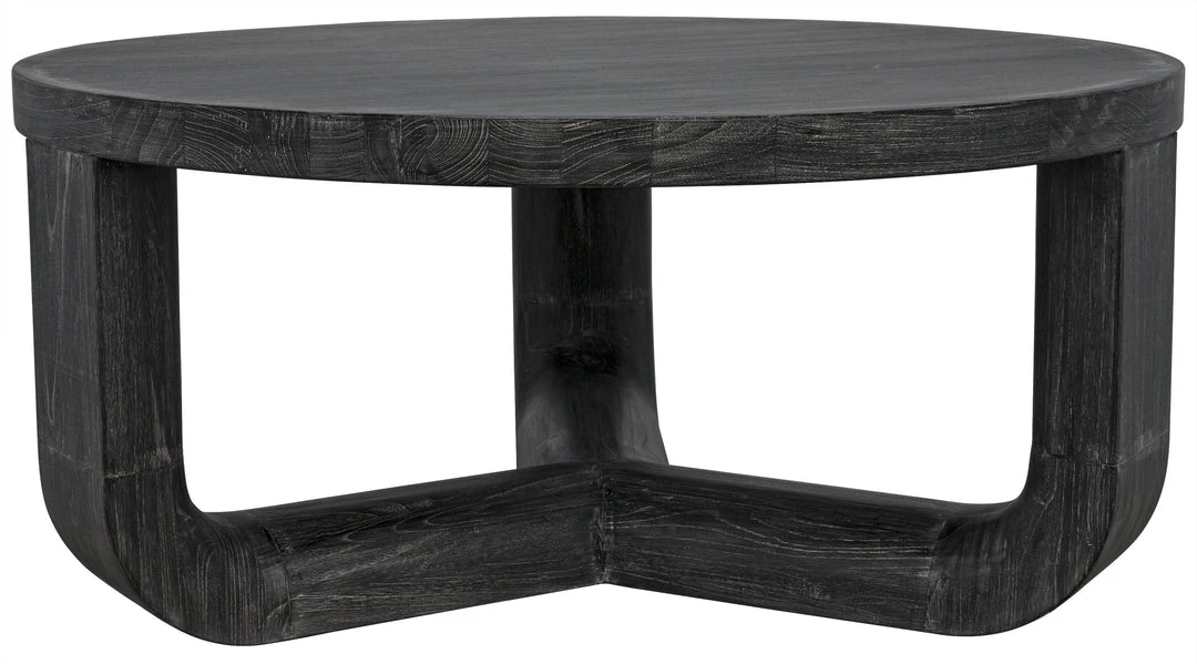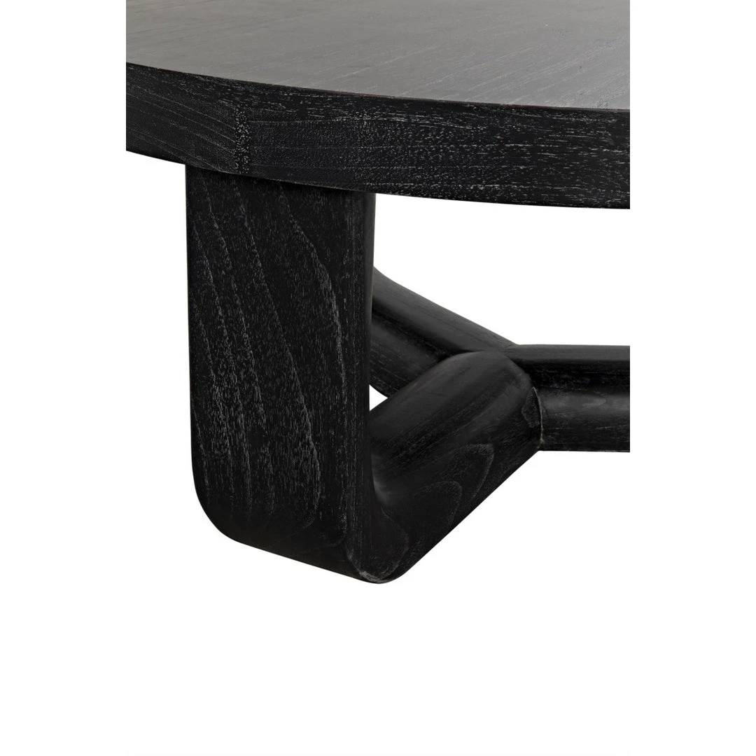 Mindi wood is expertly formed into this simple round coffee table. Its unique three-sided base adds interest, while its minimal finishing respects the natural grain of the Indonesian hardwood.