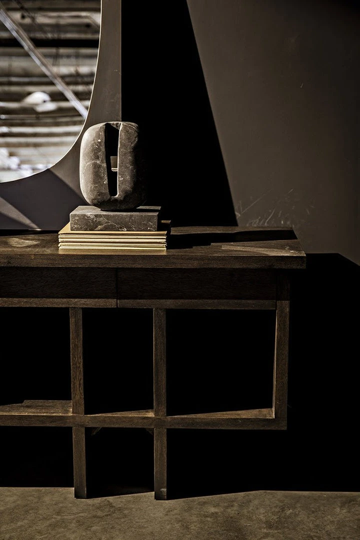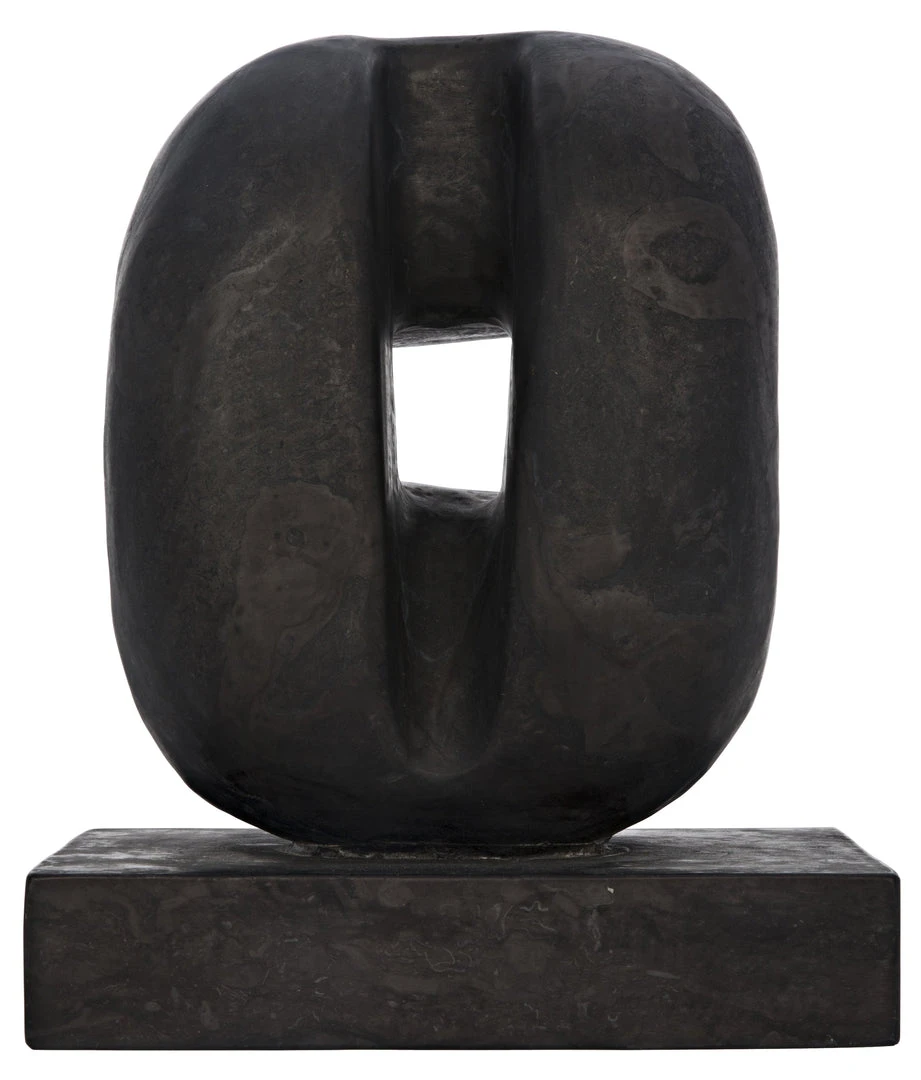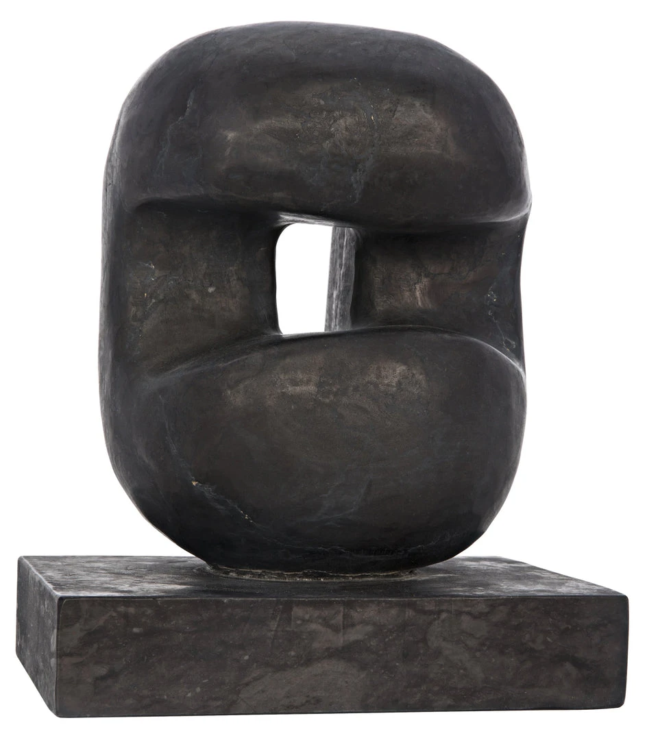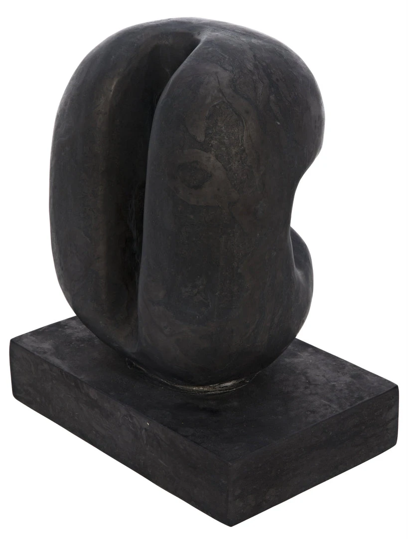 Black marble is carved into intriguing curves in this compelling sculpture that rests on a solid marble base.