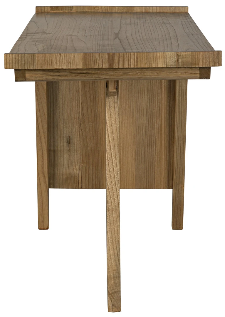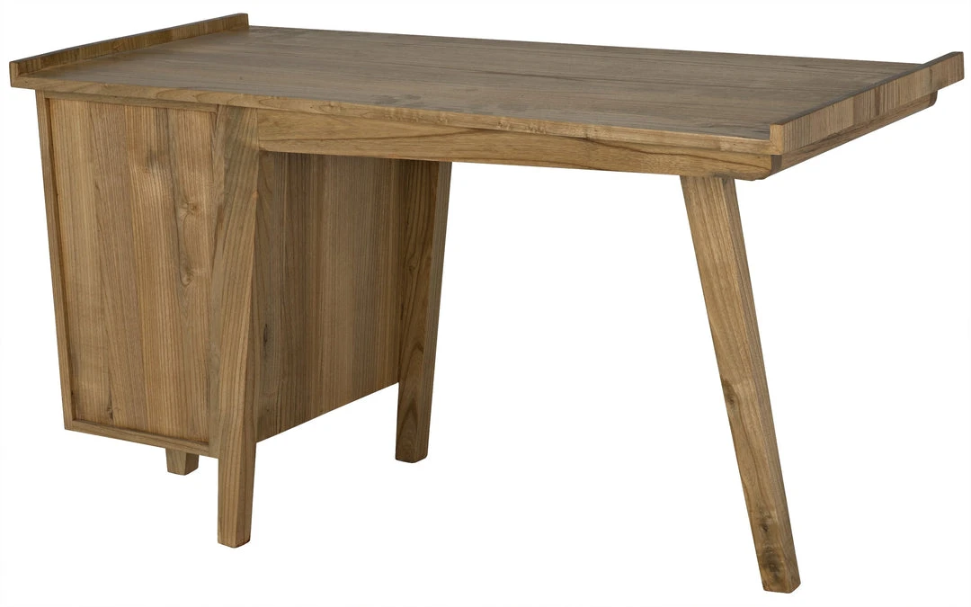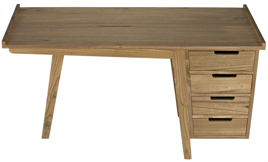 A mid-century modern inspiration and asymmetrical tapered legs provide this desk plenty of style. Smoothly sliding drawers and expert solid sungkai wood construction bring substance. Add your choice of two hand-applied finishes and this design has it all”