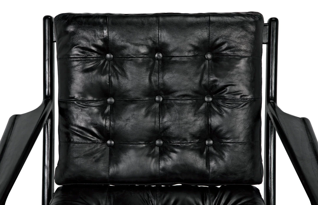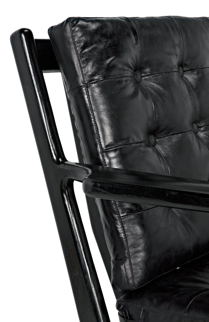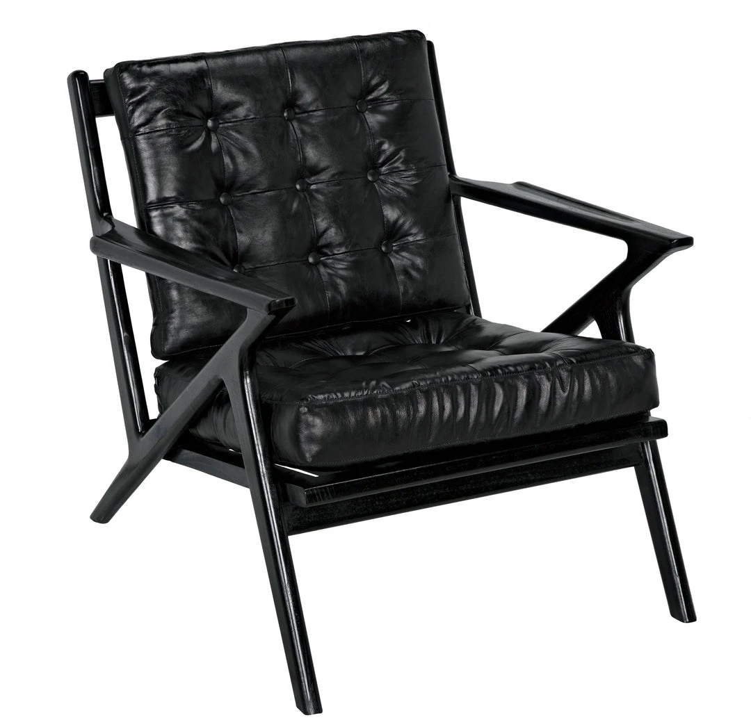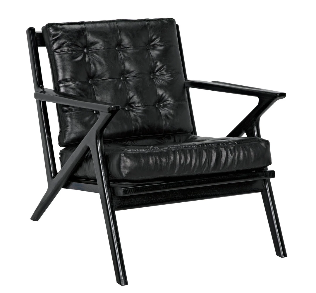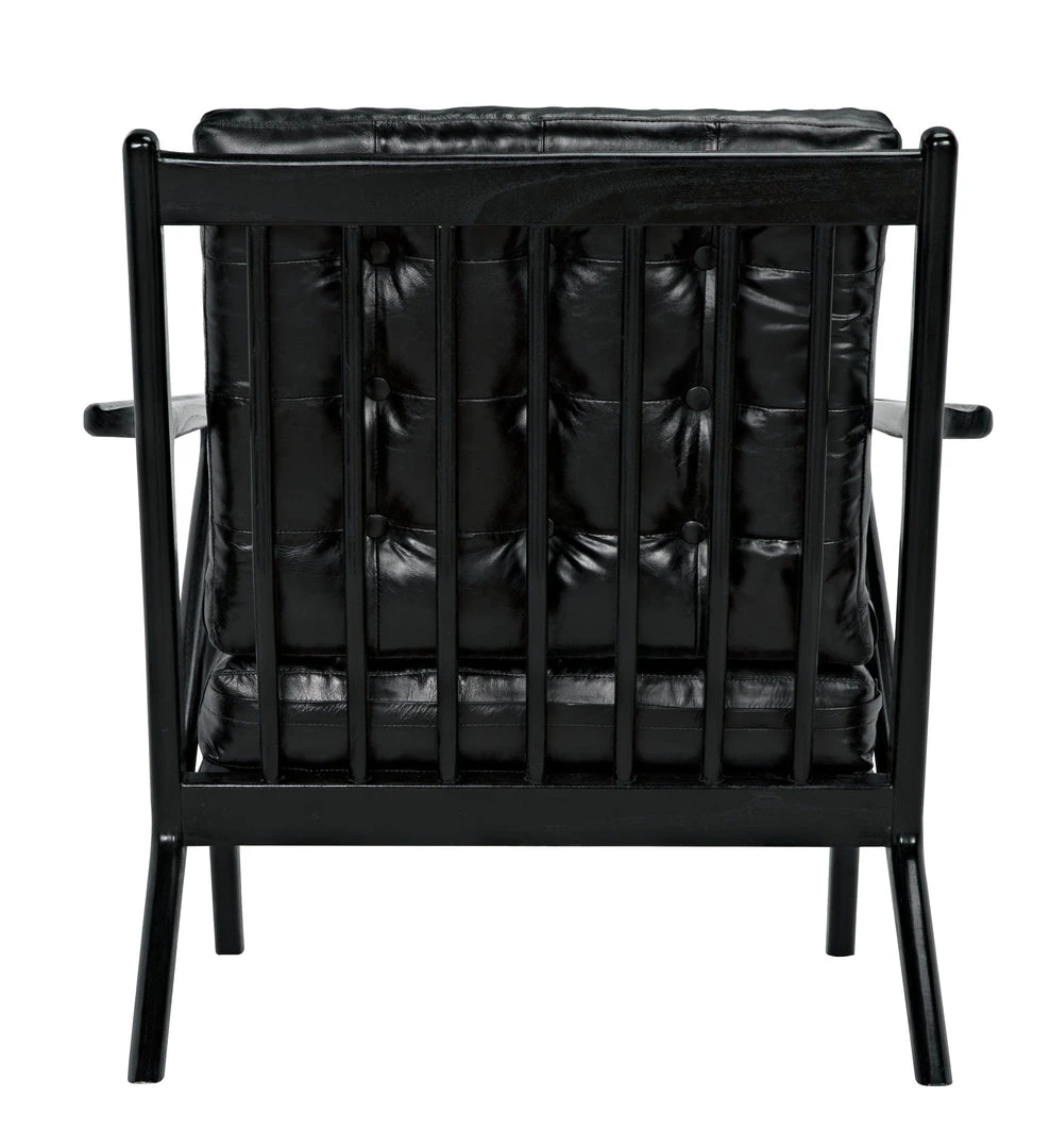 This uber chic upholstered club chair features include black leather cushioning for softness, and charcoal finished sungkai legs for an intriguing touch of edge.