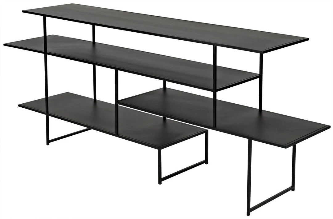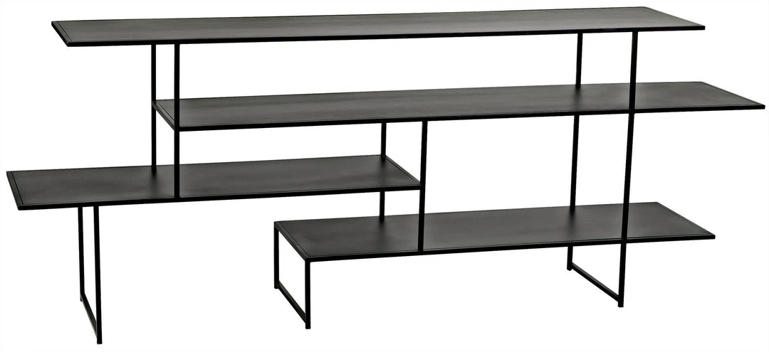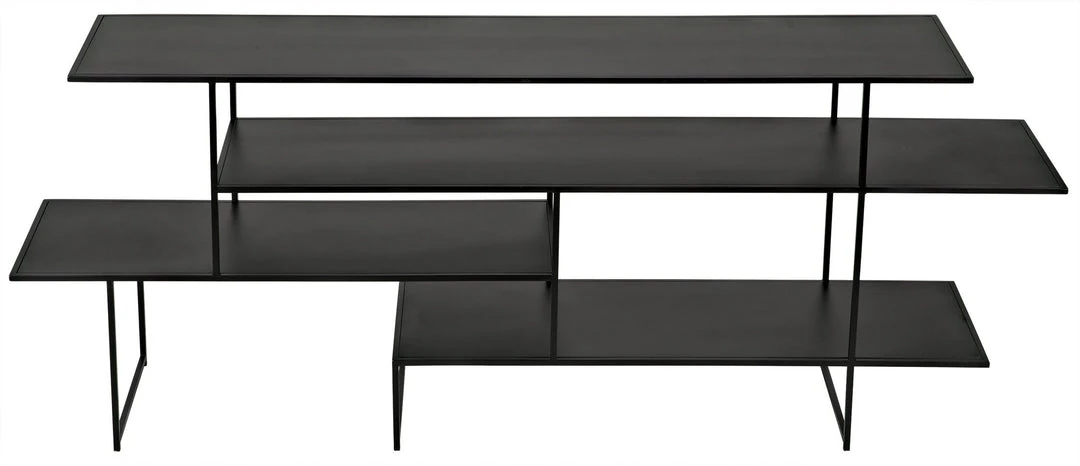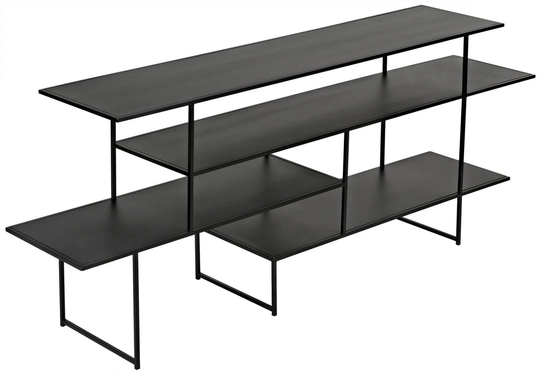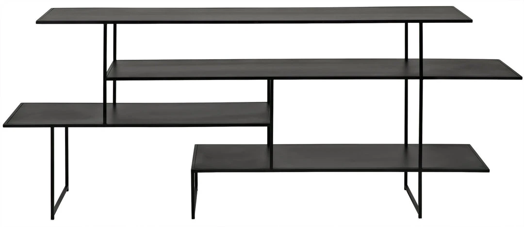 The sleek lines of this metal console need no further adornment. The multiple tops provide myriad display options, and the slim base adds style. Artisan crafted, and minimally finished to celebrate the raw material.