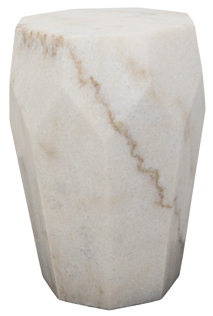 Hand-carved of white stone, this imposing accent table makes an opulent and stylish addition to a contemporary decor. No two pieces of stone, and therefore no two tables, will be identical.