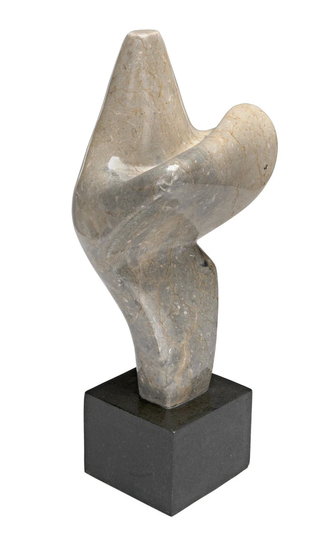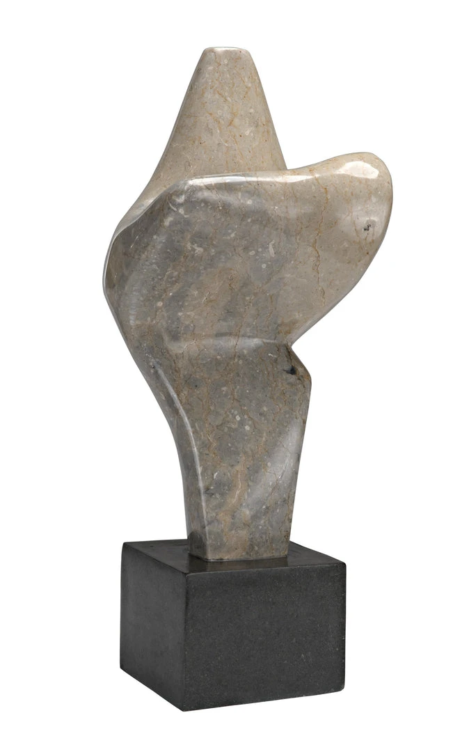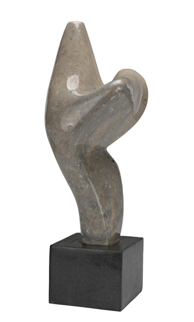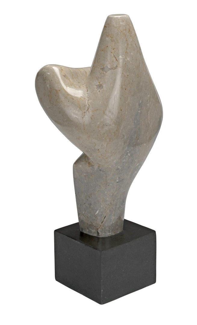 The unrivaled beauty of natural stone shines in this intriguing sculpture. The sophisticated accent piece is organic and amorphous, inviting contemplation and personal interpretation. Artisan crafted of white marble with a black marble base; these accent pieces were designed with simple lines to allow the natural material center stage. The stone we work with was chosen for the beauty of its natural striations and veining. No two pieces of marble are the same, and each of our marble objects will therefore be unique to themselves.
