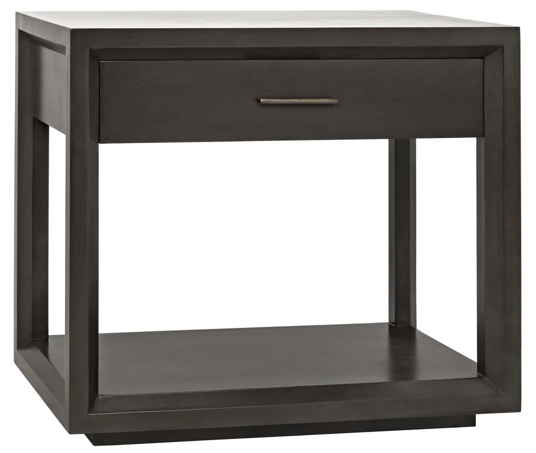 Contemporary but not avant-garde, chic but not flashy, every line in this side or accent table was deliberately drawn. Each is handcrafted of solid mahogany and expertly finished with a neutral stain and coordinating metal hardware.