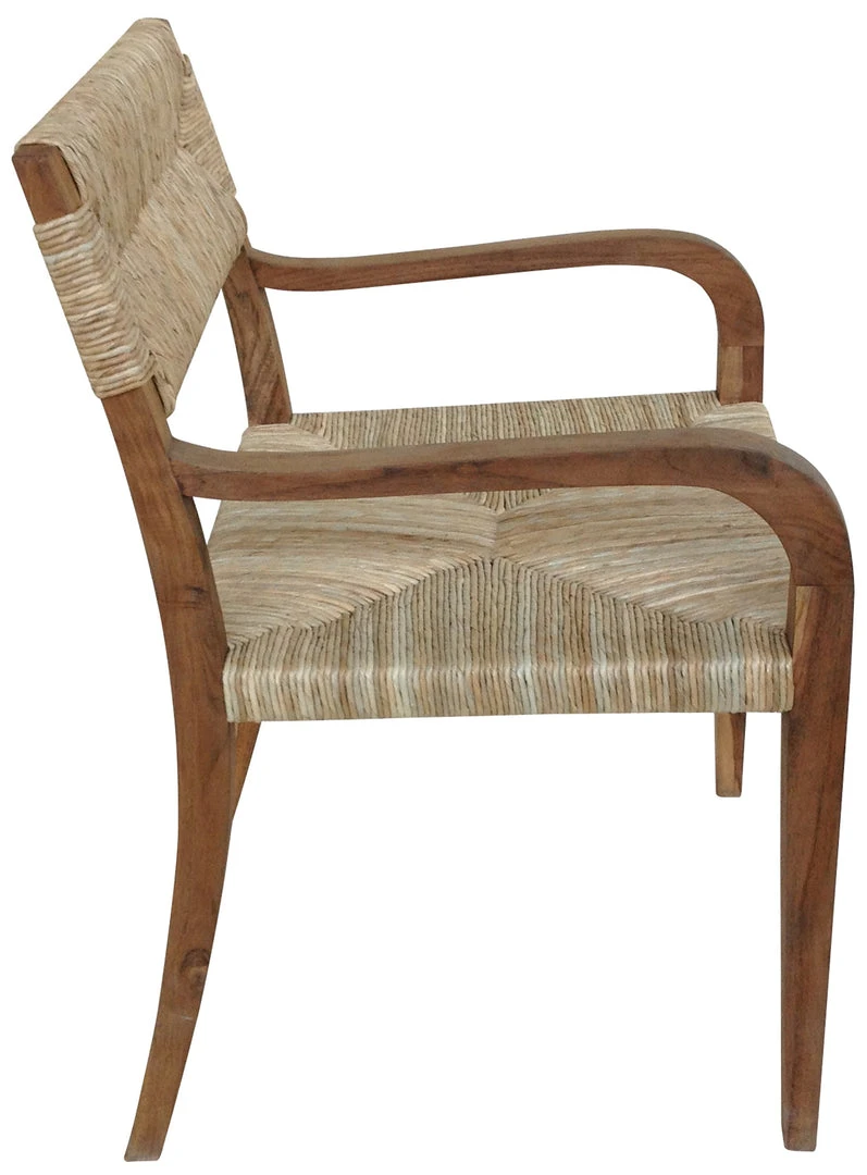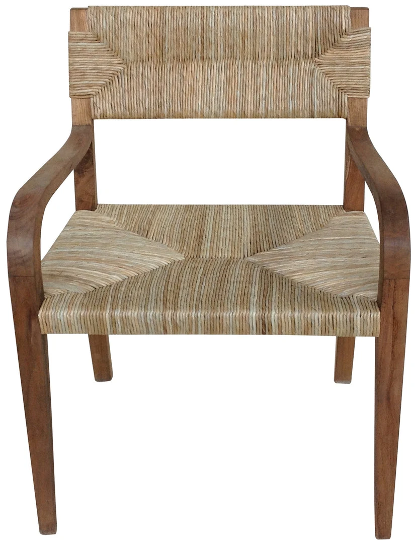 A softly curved teak chair accented with expertly hand-woven natural seagrass, this classically elegant chair is minimally finished to celebrate the tone and luster of its materials. Comfortable and timeless, it effortlessly elevates any decor.