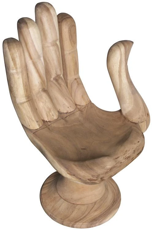 Buddha means “enlightened” and our hand-carved teak chair embodies this goal. A literal representation of the protection asana (pose), the raised, open hand symbolizes a shield, signifying courage and offering protection from fear, delusion and anger.