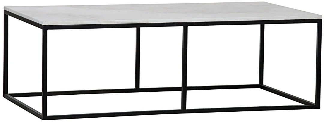 A slim, simple metal frame takes a background role in this piece, in deference to the star of the show, the striking slab of white quartz it supports.