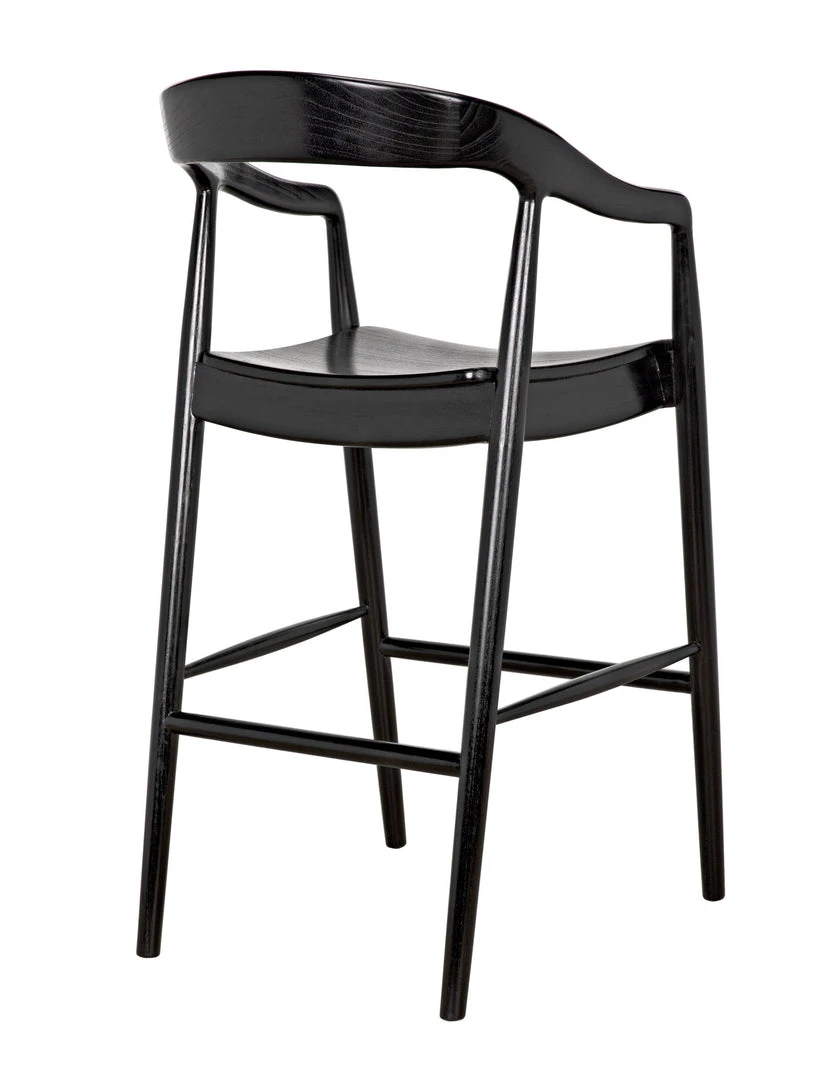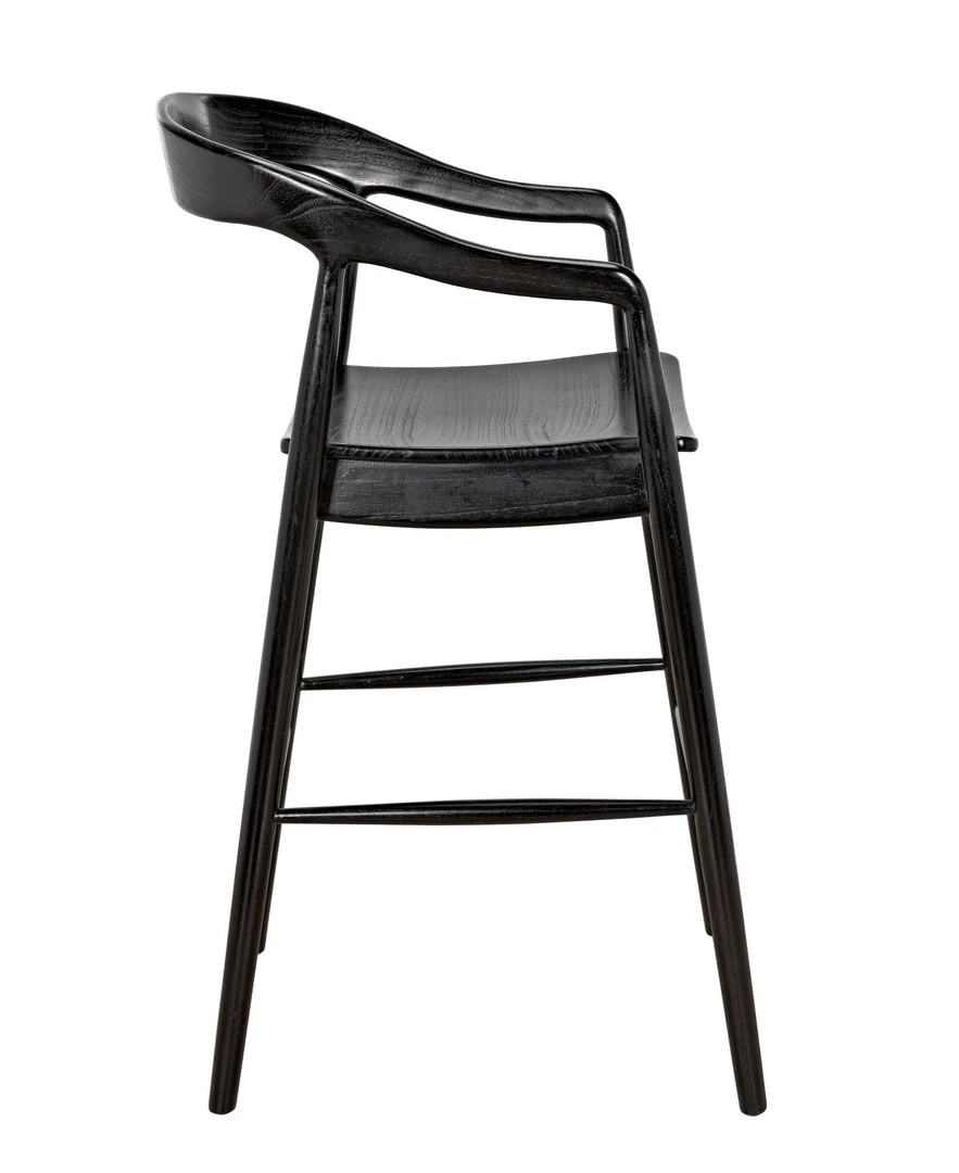 An ergonomically curved seat adds comfort to this beautiful counter-height chair. Expertly crafted of sungkai wood, a sustainably ranched hardwood, it is finished with multiple hand-applied layers of charcoal black.
