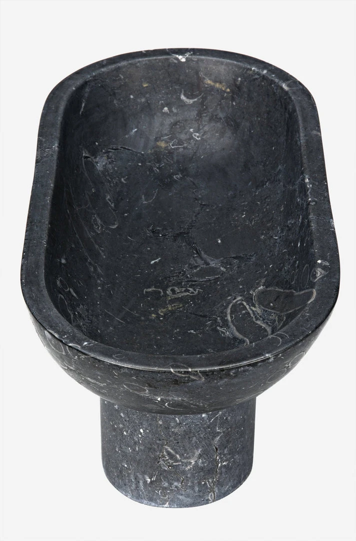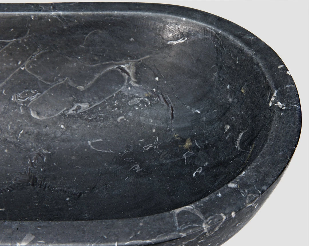 Artisan crafted of solid black marble; these accent pieces were designed with simple lines to allow the natural material center stage. The stone we work with was chosen for the beauty of its natural striations and veining.