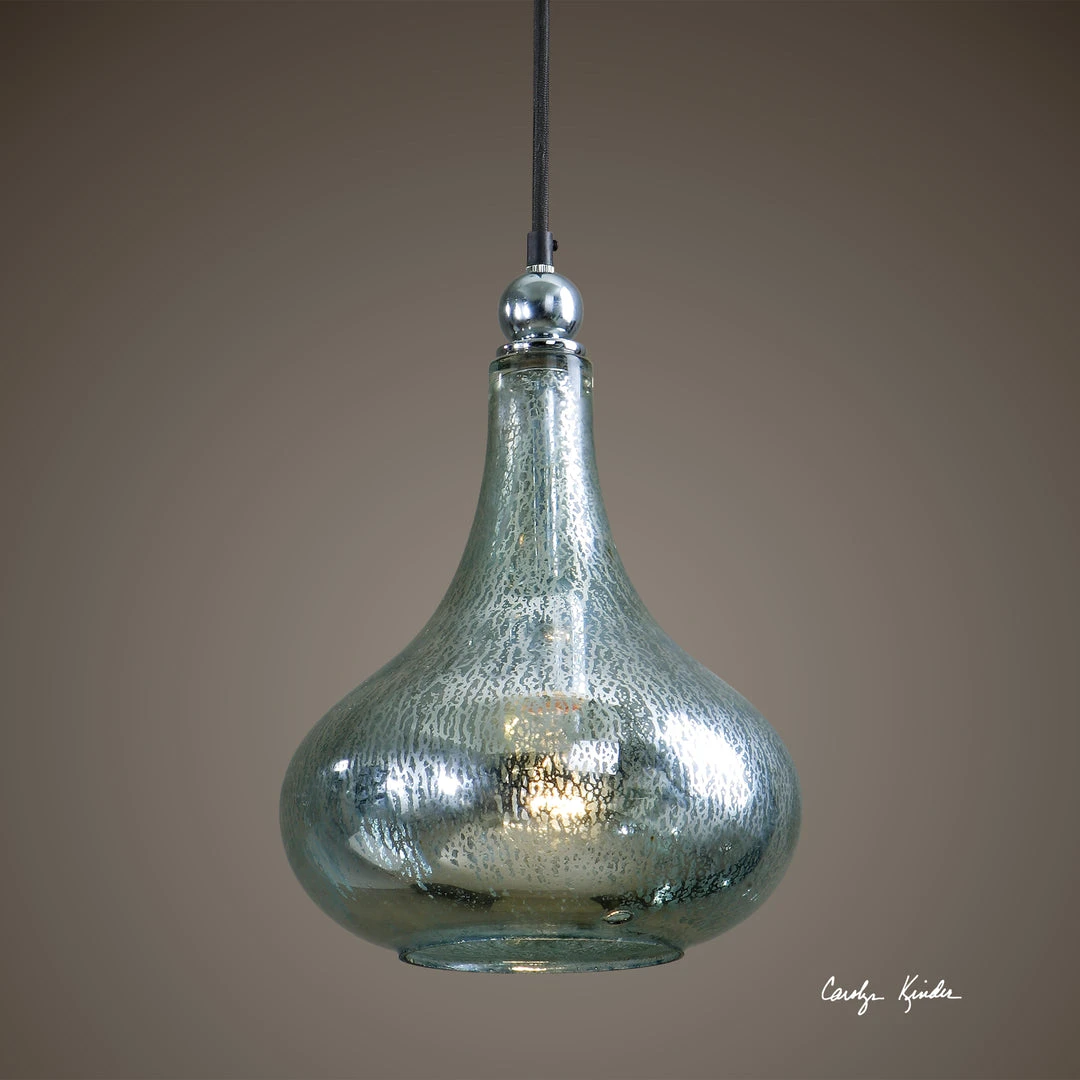 Blue-green Mercury Glass With Plated Chrome Accents.
