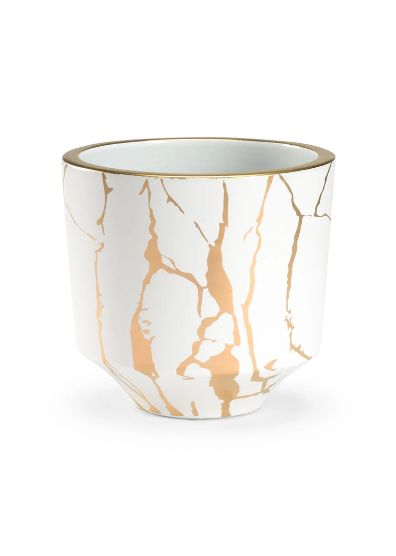 Contemporary Gold Rimmed Cachepot With Cream And Gold Decoration.