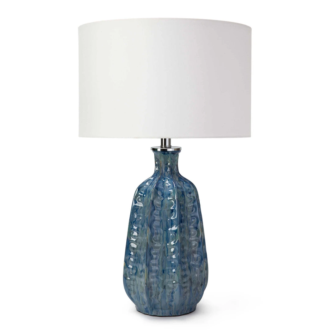 Make a coastal chic statement with this ceramic table lamp. A handcrafted base provides dimension and texture, creating visual interest. Place one in a living room for a bright, light accent.