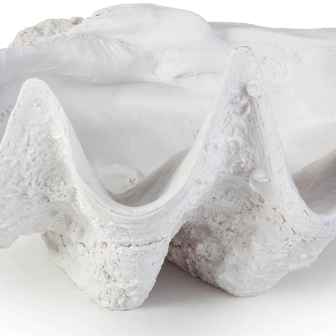 Originally purchased at an estate sale and then replicated in resin our Bimini clam shell accessory makes a statement. Its coastal essence works well in modern interiors, bringing the spirit of the coast to your home. Use in a bathroom to store towels or in the living room as a center piece on a console table.