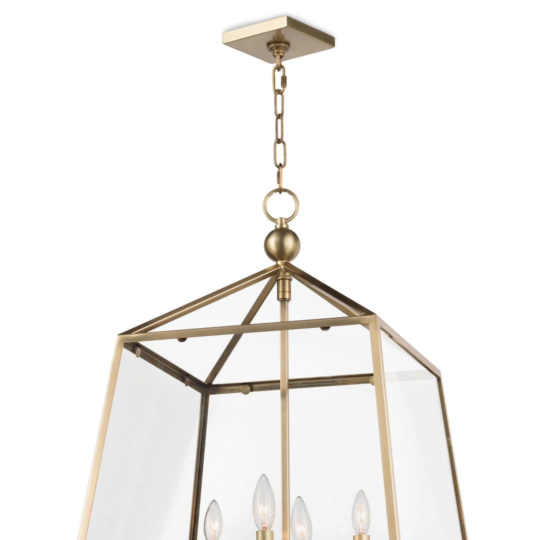 Traditional and contemporary the Cachet Lantern has a classic look. Finished in natural brass and crafted from steel and clear glass, as functional as it is beautiful, it focuses light upon a dining area or work space.