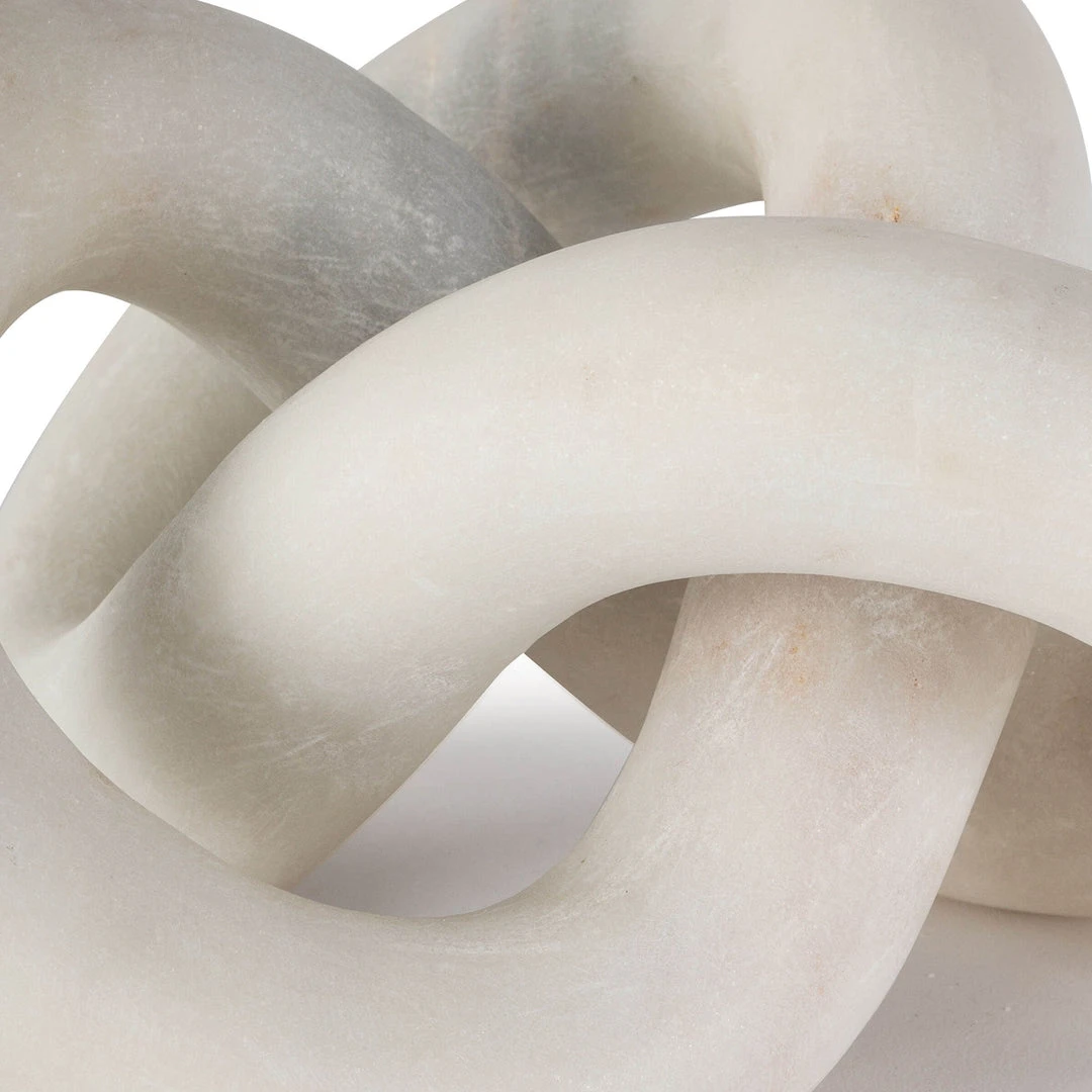 Hand-carved from a single piece of white stone, this abstract sculpture weaves about creating a flowing singular form. Add this modern tabletop accessory to your living room or bedroom.