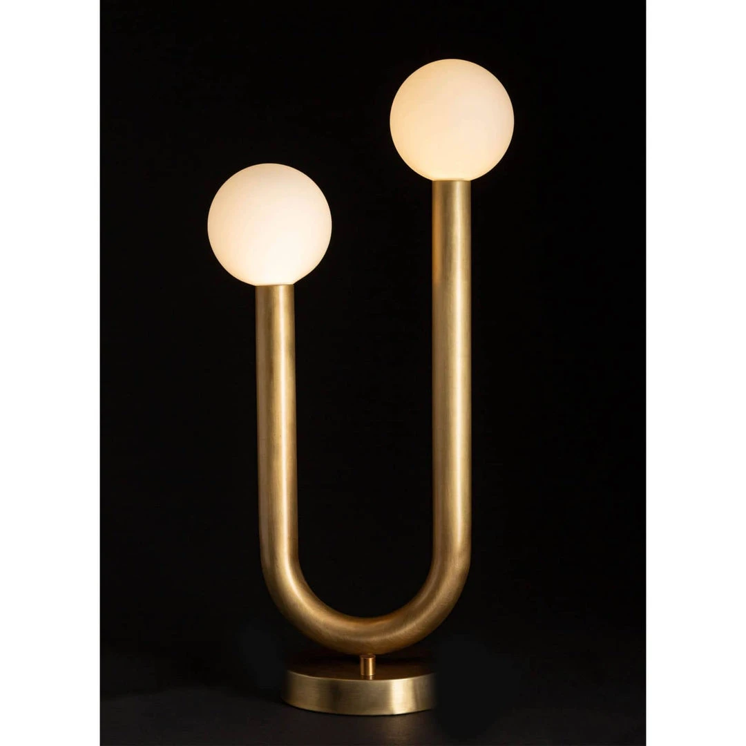 The Happy Table Lamp is a unique mix of modern and playful. Happy’s simple, asymmetrical charm creates uplifting illumination perfect for an entryway, bedroom or living space. The lamp’s metal tube frame, cylindrical base and contrasting matte white glass globes create an elevated take on a playful shape. Create the perfect amount of custom illumination in your space by using the lamp’s dimmer switch.