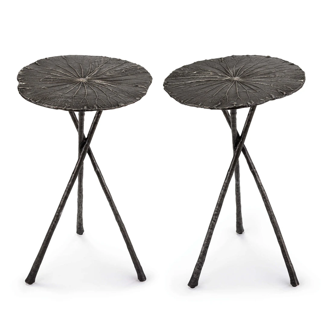 A real lily pad was cast in aluminum to become the top of this unique side table. Its flat top provides as much function as it does decoration. This organic piece is a surprising addition to your space when a little bit of the natural world is needed within.