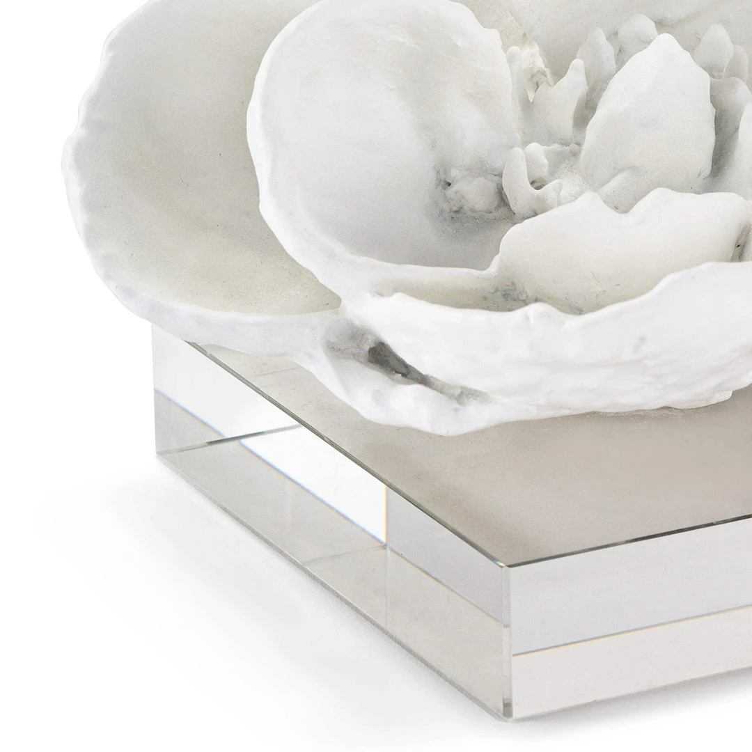 A beautiful magnolia cast in bloom brightens up your living room. Its white finish and acrylic pedestal base take it into contemporary territory.