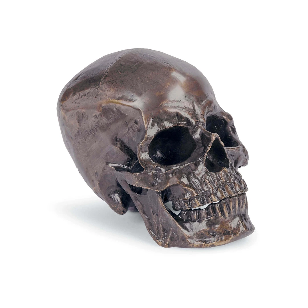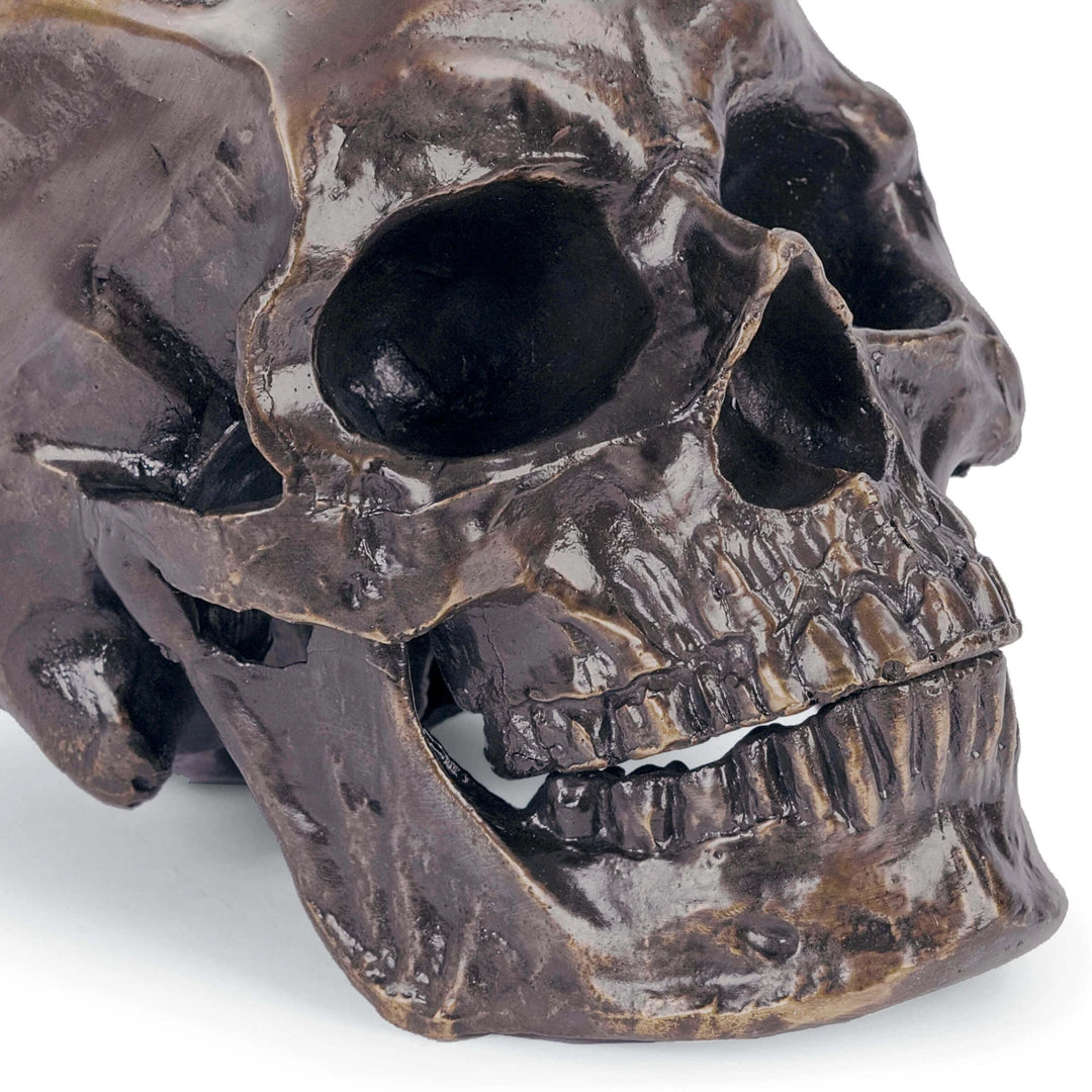 This skull tabletop accessory, finished in bronze, looks edgy and glam as a bookend or decorating a side table in your living room.