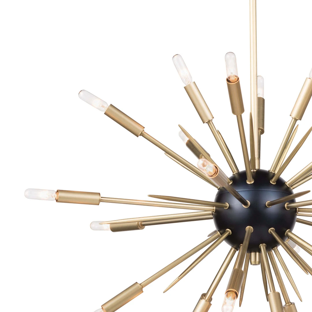 Dimensional light stems protruding from a bold orb lend a timelessly chic fixture, dispensing style while illuminated. Nebula Chandelier electrifies the room.