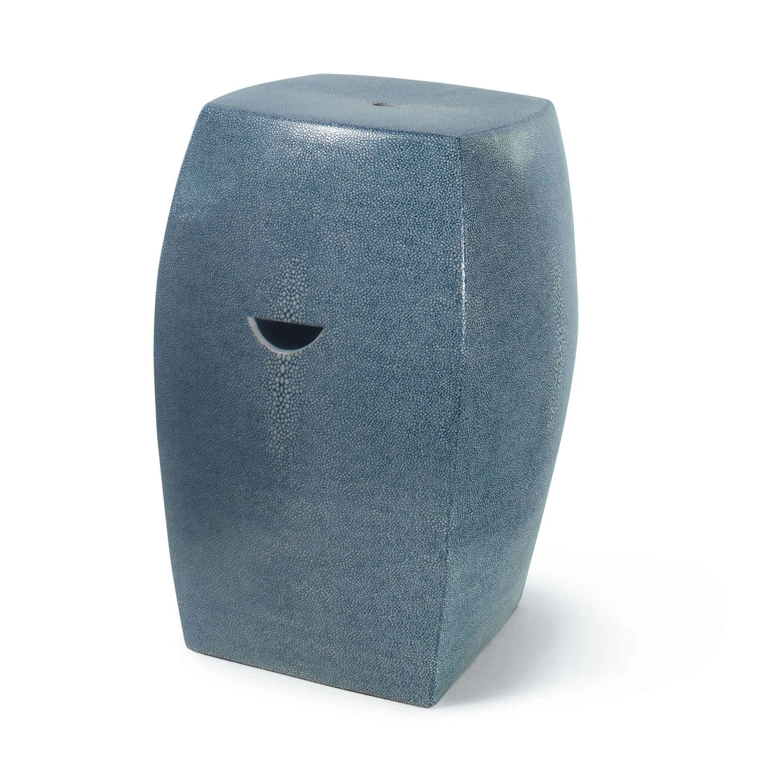 This garden stool’s graceful shape is highlighted by its shagreen exterior, which warrants space in a modern living room.
