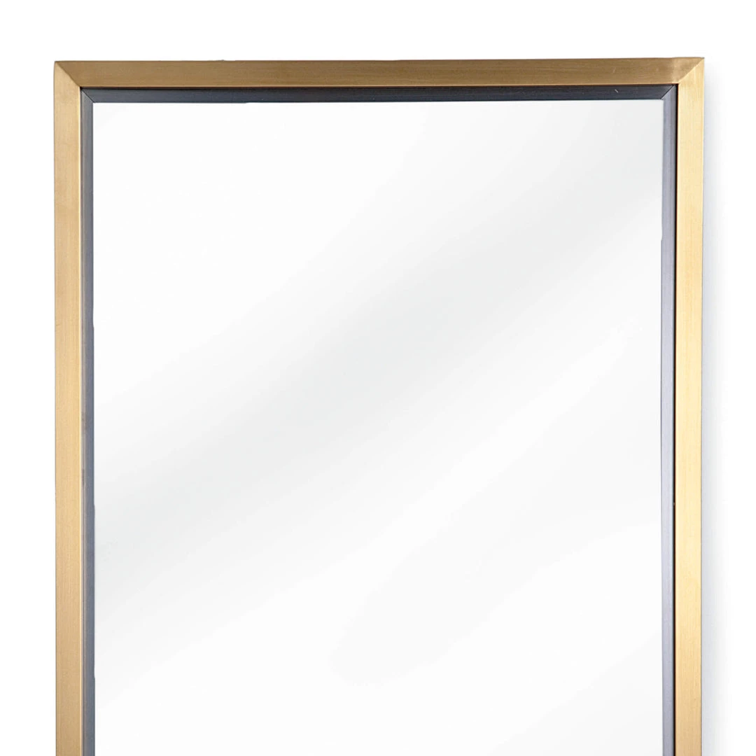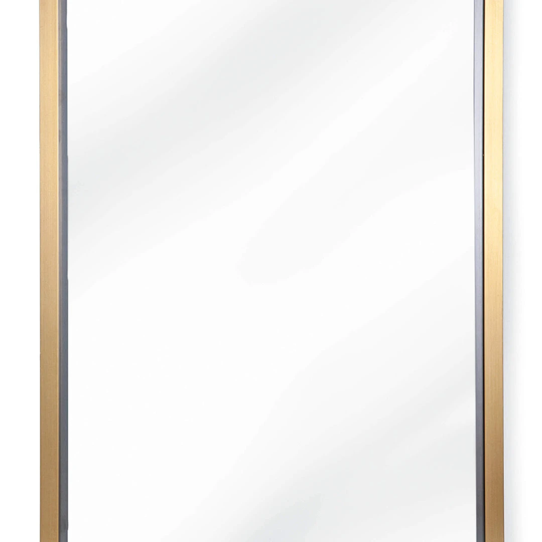 With its subtle natural brass frame and minimalist design, this rectangle mirror adds a finished touch to any room.