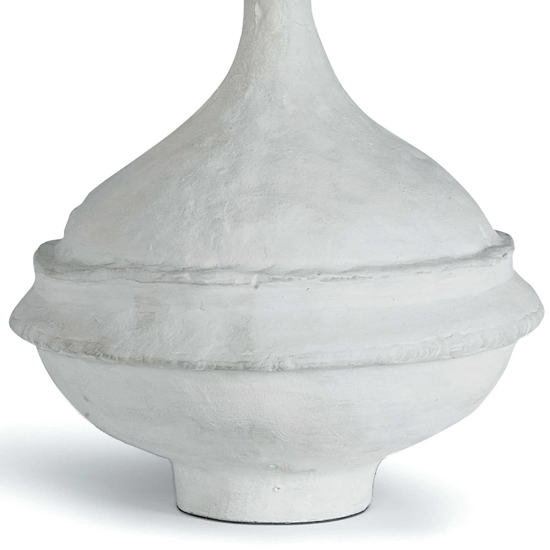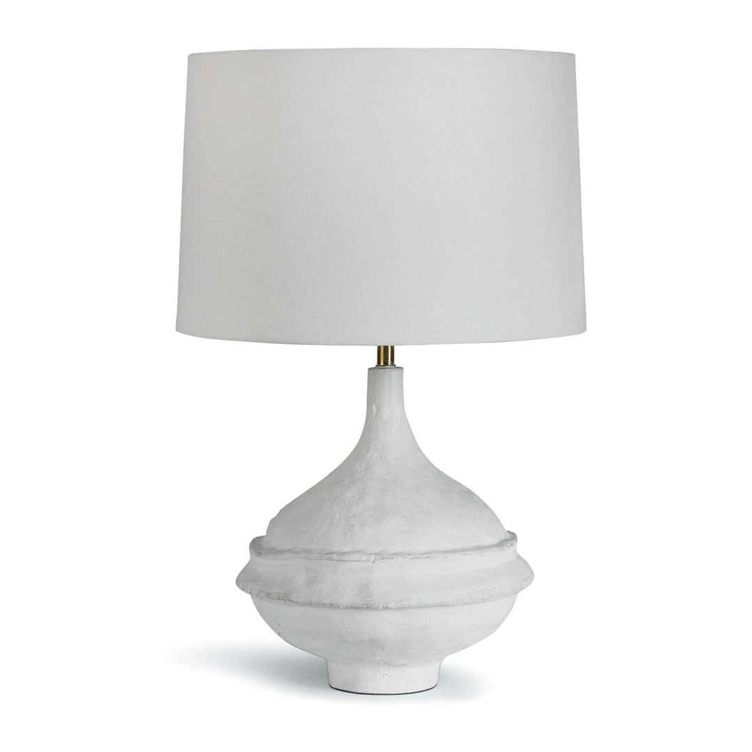 Inspired by a paper maché bowl, this versatile lamp is at home in a variety of spaces. Complex curves, paired with a matte white finish gives this table a unique appearance. Slight imperfections were left in, adding beauty and originality.