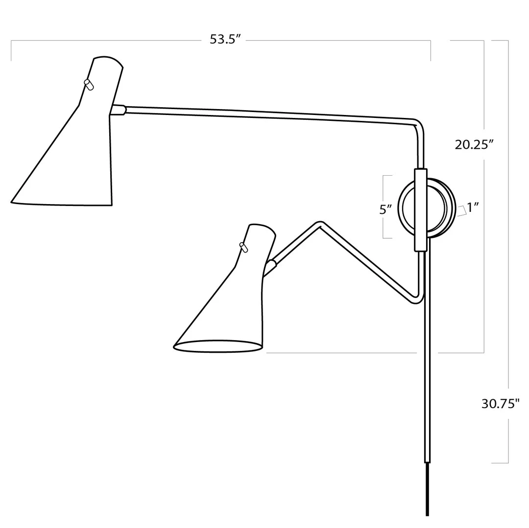 Add a modern statement with this unique pin up or installed lighting piece. Spyder’s two adjustable arms are each unique in shape, creating a clean, sculptural aesthetic. Place on any wall that needs directional or task lighting, from living room to office to bedroom, the Spyder’s dramatically modern shape exudes luxe appeal. Create the perfect amount of custom illumination in your space by using the fixture’s dimmer switch.