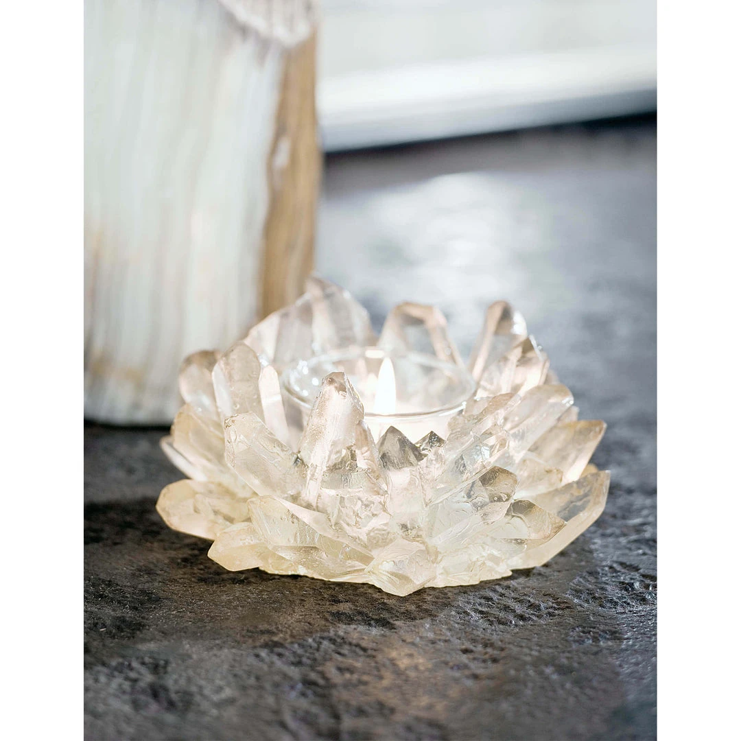 Beautiful and elegant, the Votive candle holder’s extruding crystal design has a romantic feel. Light moves through these translucent resin crystals giving your bedroom or living room a gorgeous warm glow.