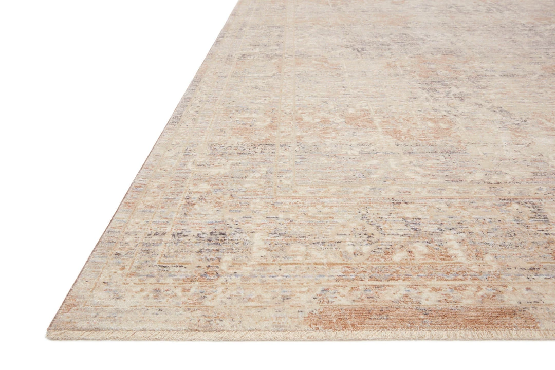Power-loomed of polyester and viscose in Turkey, the Faye Collection displays a soft color palette and a mix of distressed and traditional-inspired motifs.