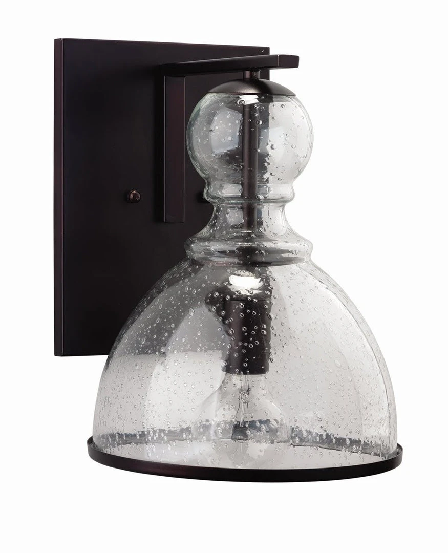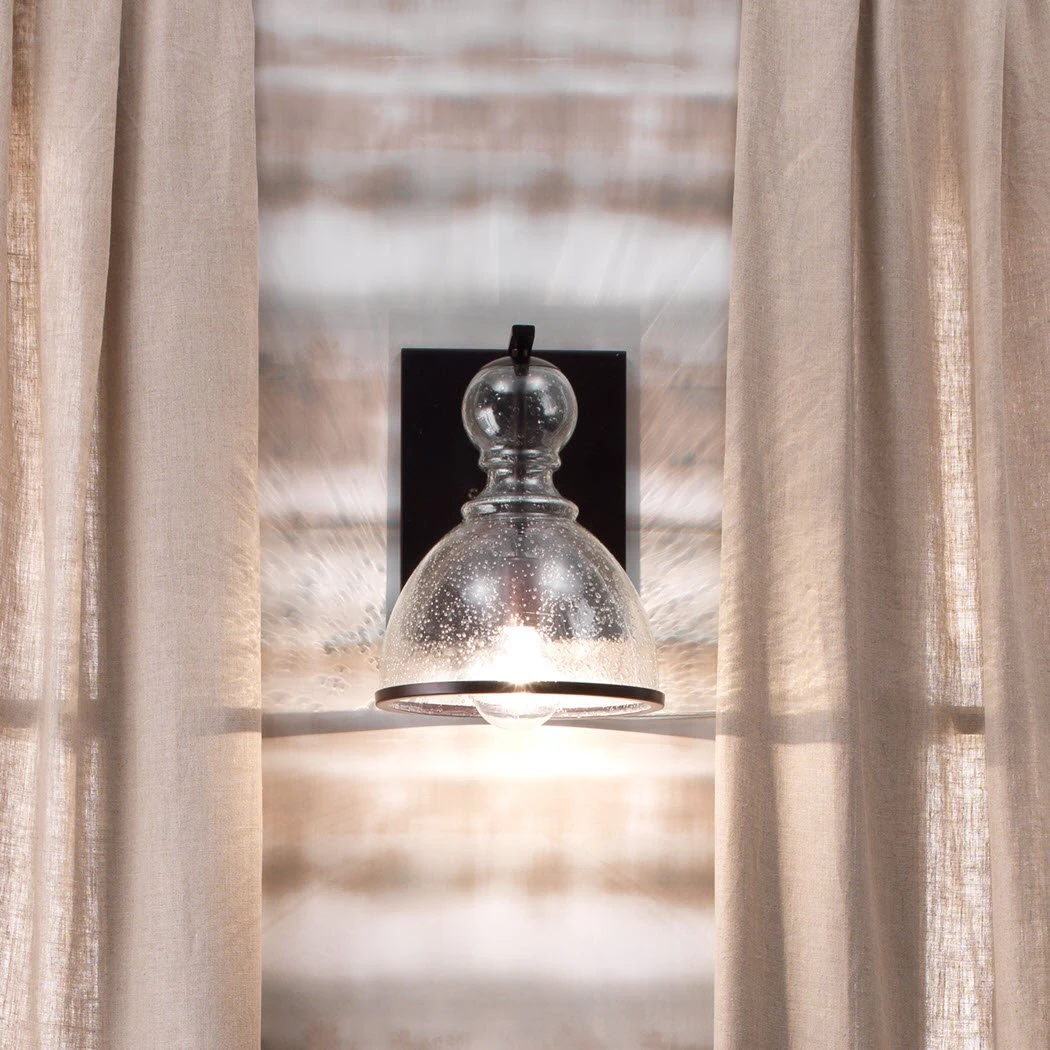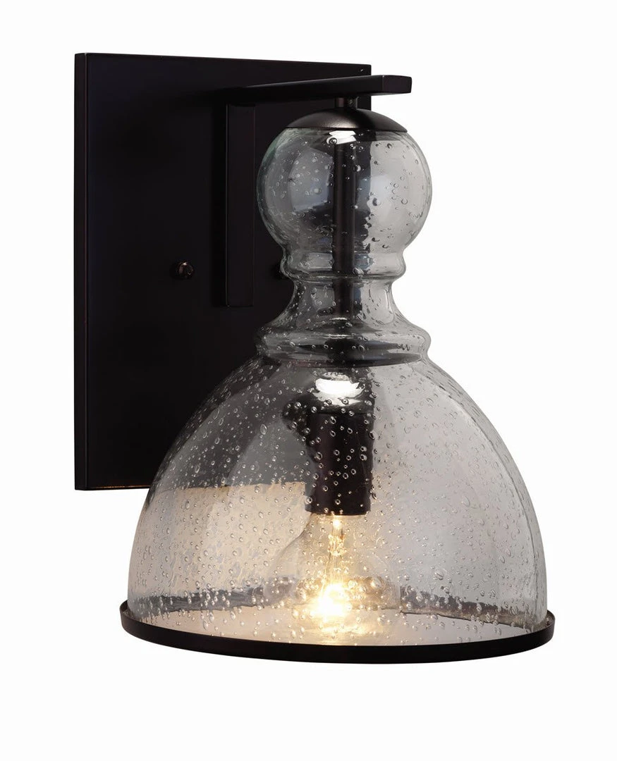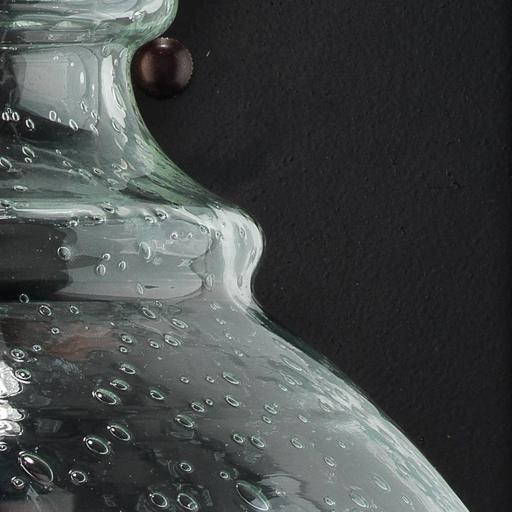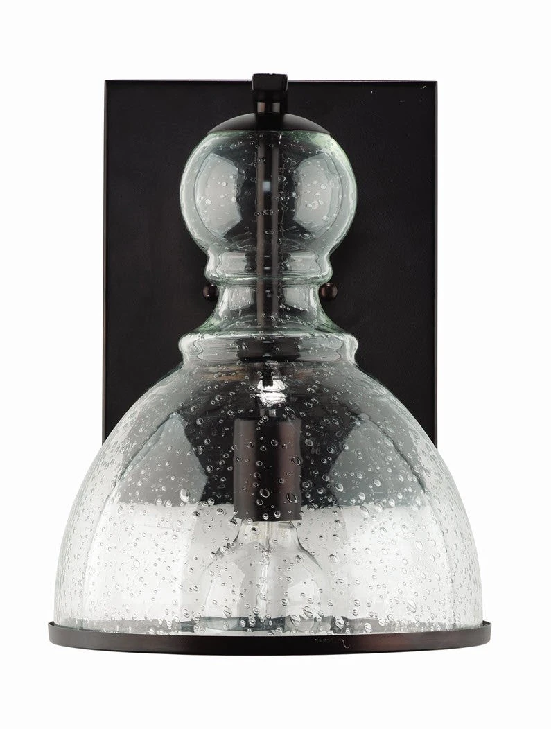 Seeded Glass is hand blown rough glass where the texture of the glass is the most important design element. These bubbled, hand made glass pieces are sophisticated in the way they shine and glisten when the light hits the surface.Finish will vary, seeded glass bubbles will vary in pattern, size and dispersion. Backplate: 8″w x .5″d x 10.25″h. Backplate