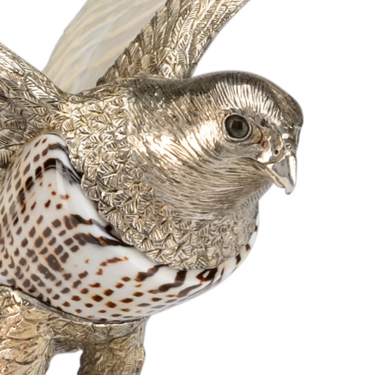 Silver Plated Brass With Leopaidus Cone & Kabibi Shell On Verde And Black Finished Composite Base
