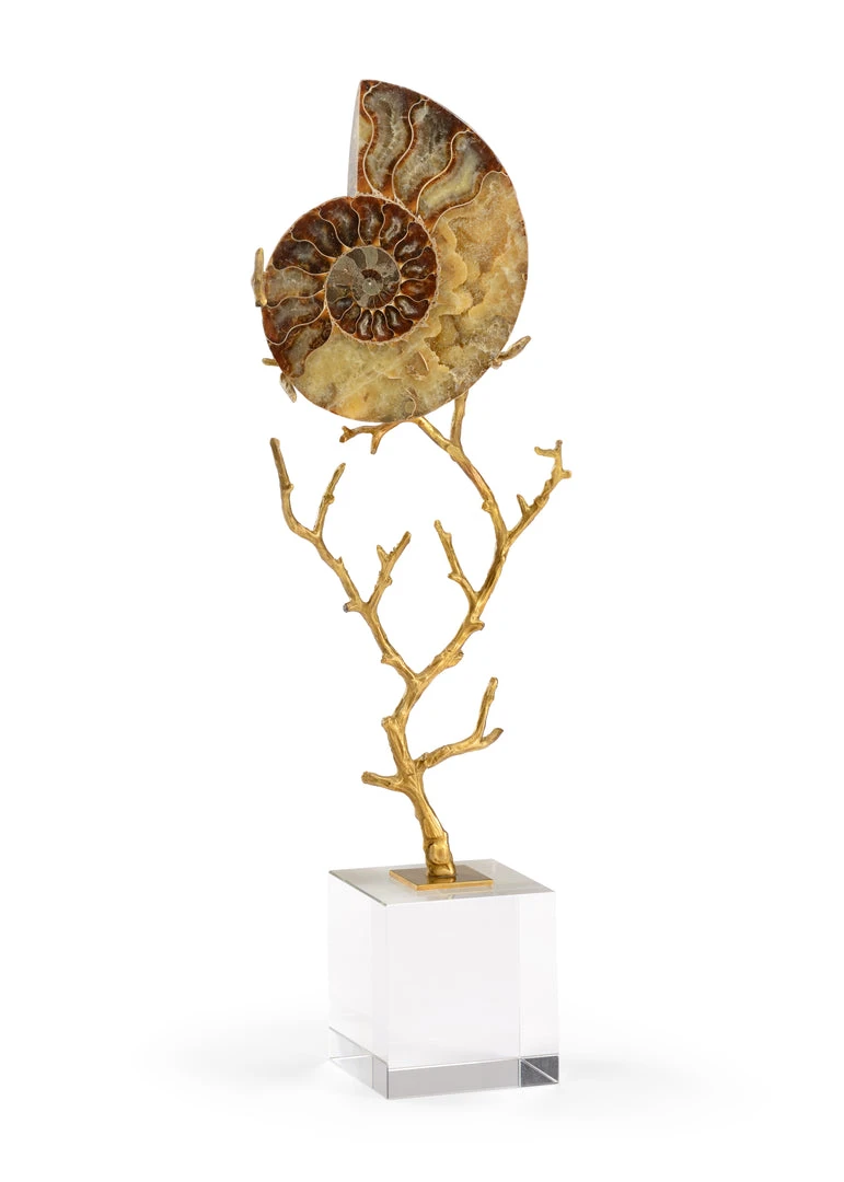 Natural Shell Shaped Fossil On Brass Stem And On A Crystal Base-Fossil Color May Vary