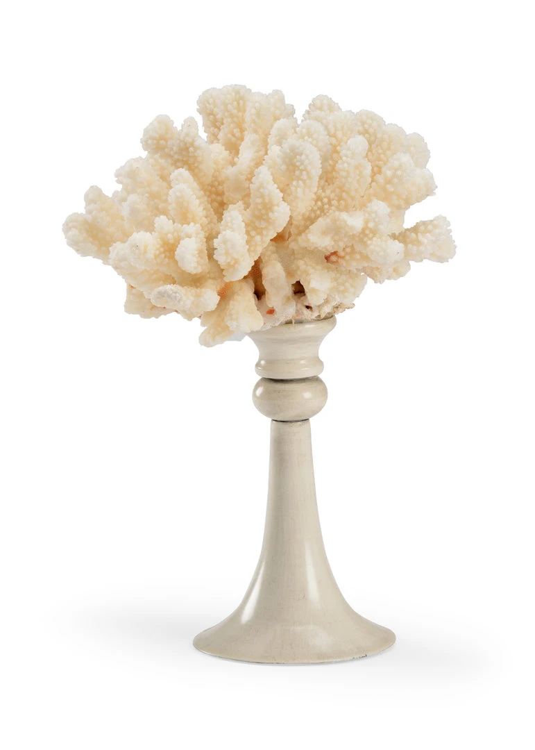 A Piece Of Natural White Branch Coral Atop An Antique White Painted Iron Stand Creates A Nature Inspired Accent For Your Coastal Home. This Stunning Accent Is Impressive On All Sides And Will Make A Lovely Statement On Any Table Or Bookcase. Coral May Vary.