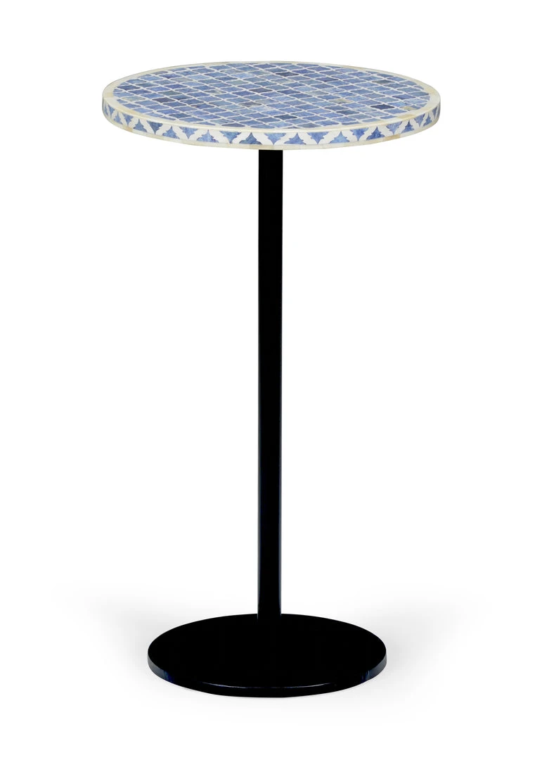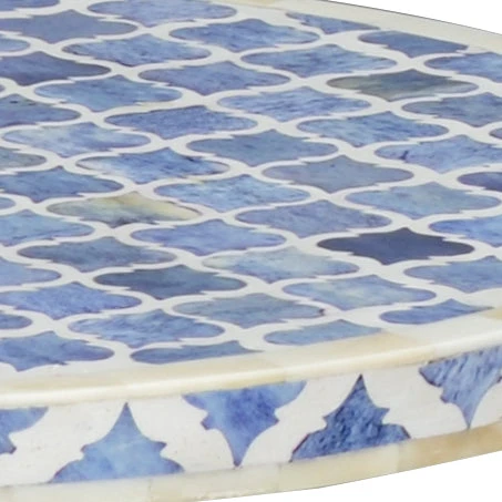 Cream With Blue Diamonds On Bone Inlaid Wooden Top With Black Painted Iron Base
