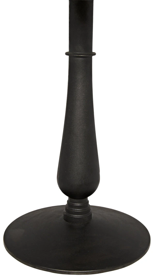 Two elemental materials meet in this quietly dramatic accent table. The base is formed of cast iron, and the top is a slab of natural white marble. No two pieces of marble, and therefore no two tables, will be identical.