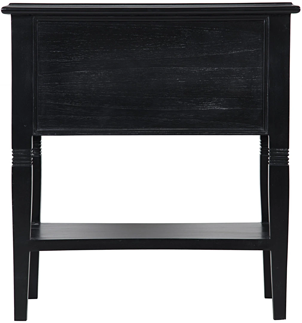 Intriguing design elements, like decorative carving atop tapered legs and two slim drawers, elevate the traditionally inspired lines of this artisan crafted solid mahogany side table. Available in three finishes, each was chosen to highlight the hardwoodsÕ natural grain.