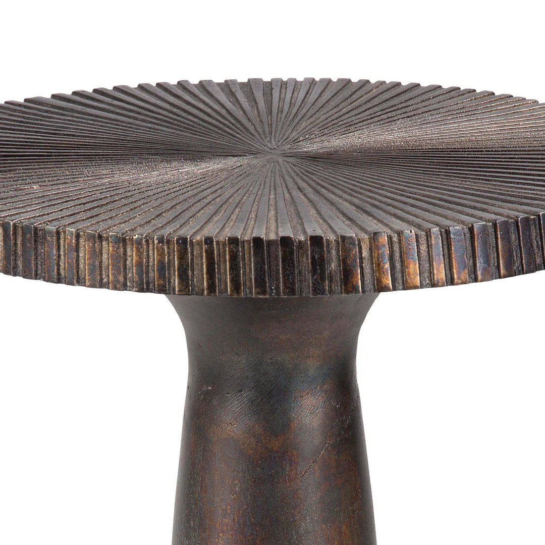 Modern lines and a smooth finish combine with stunning interior texture to give the Ellis table a refined, yet industrial, appeal. Sand-casted of aluminum with a warm blacken zinc finish, this piece lends a sophisticated look to any style of decor. Built to the perfect height for drinks and magazines, the table takes center stage with its strong profile.