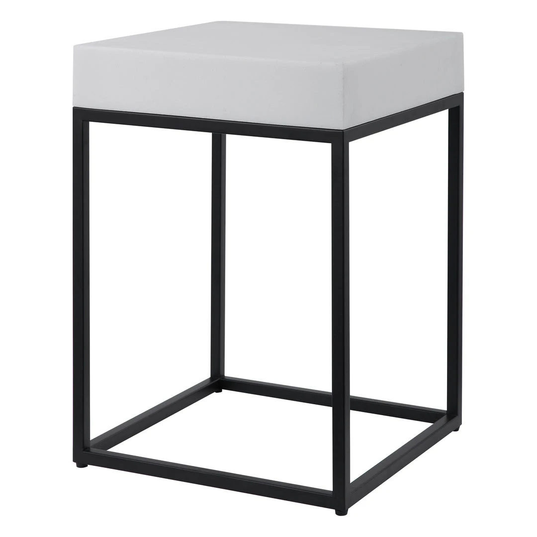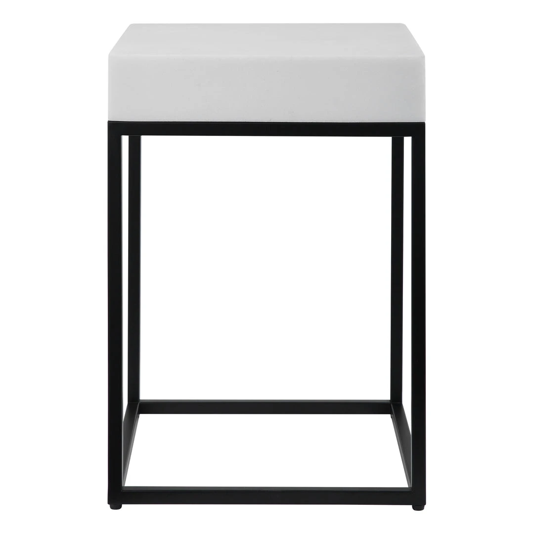 This Modern Accent Table Combines A White Marble Look, Atop A Simple Steel Base Finished In Aged Black.