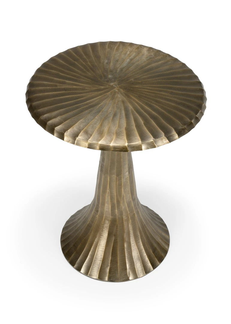 The Banner Elk Bronze Round End Table Is Stylized And Carved With A Highlighted Brass Finish. The Texture Is Rippled Yet Smooth, Inspired By Tree Roots On The Trails In The Forests Of Banner Elk, North Carolina. The Banner Elk Bronze Round Table Is A Compliment To The Square Tara Tiered Table (490455) And The Fall River Mirror (301595), Unifying Texture And Color To Any Project.