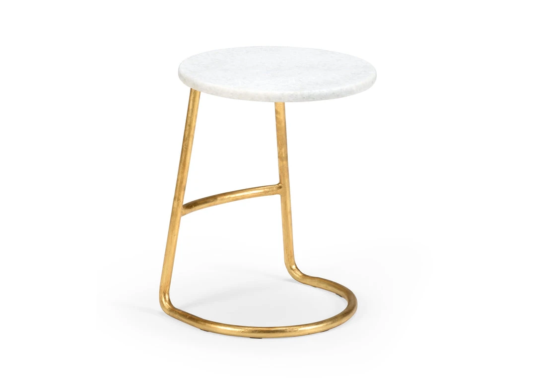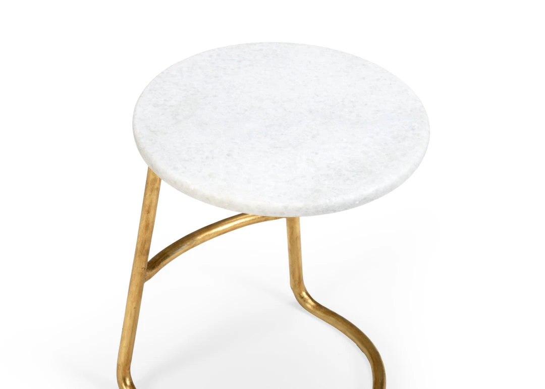 Pull Up End Table, White Marble Top Antique Gold Leaf Finish On Iron Base.