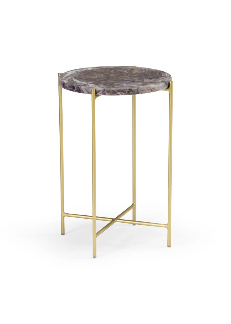 Natural White And Purple Stone Top With Antique Gold Finish On Iron Base