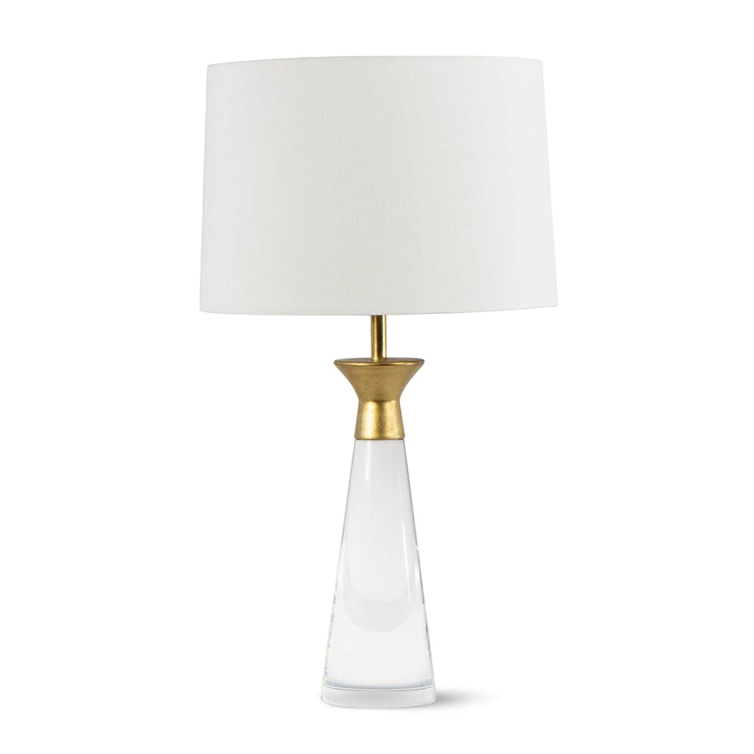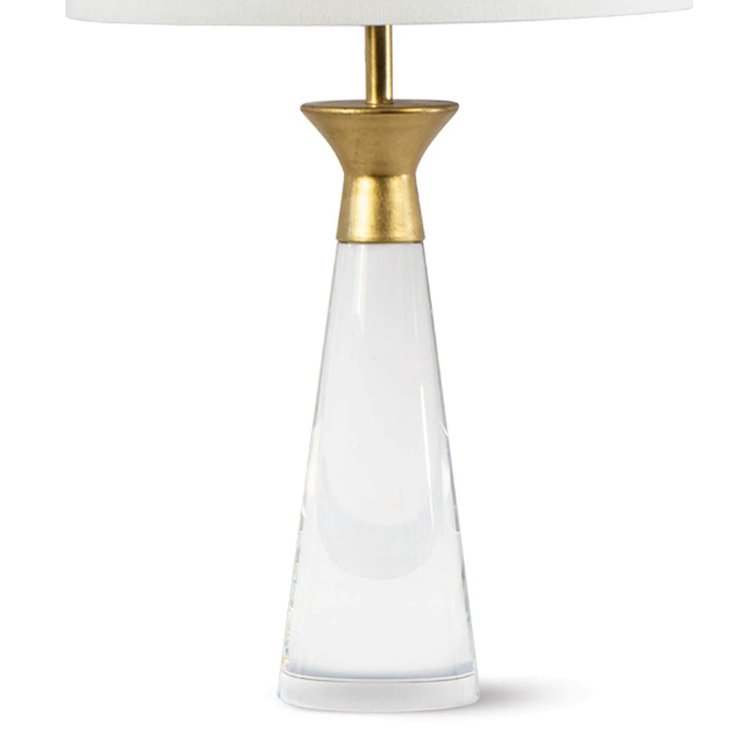 Simplicity is the Starling’s strong-suit. A classic conical crystal base is uniquely capped in a gold leafed metal. The simple silhouette is crowned with a subtly tapered, natural linen shade and matching gold ball finial. Place this traditional crystal lamp with a modern twist in a living room, bedroom, den or entryway.