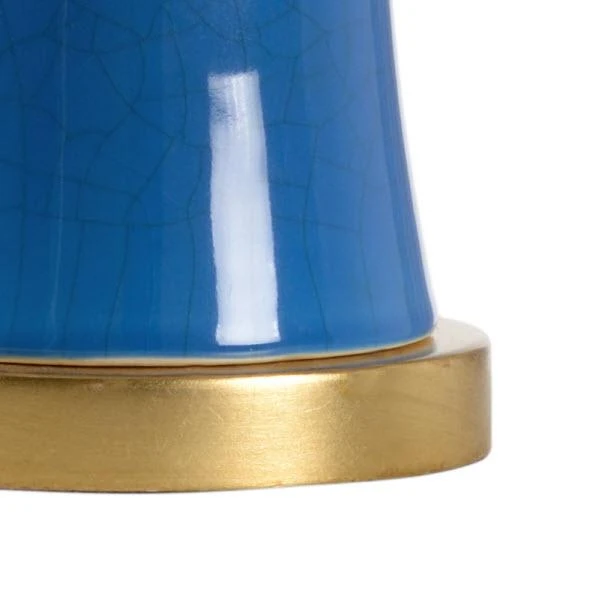 Blue Crackle Glazed Ceramic With Antique Gold Leaf Wood Cap And Base And With Antique Brass Parts