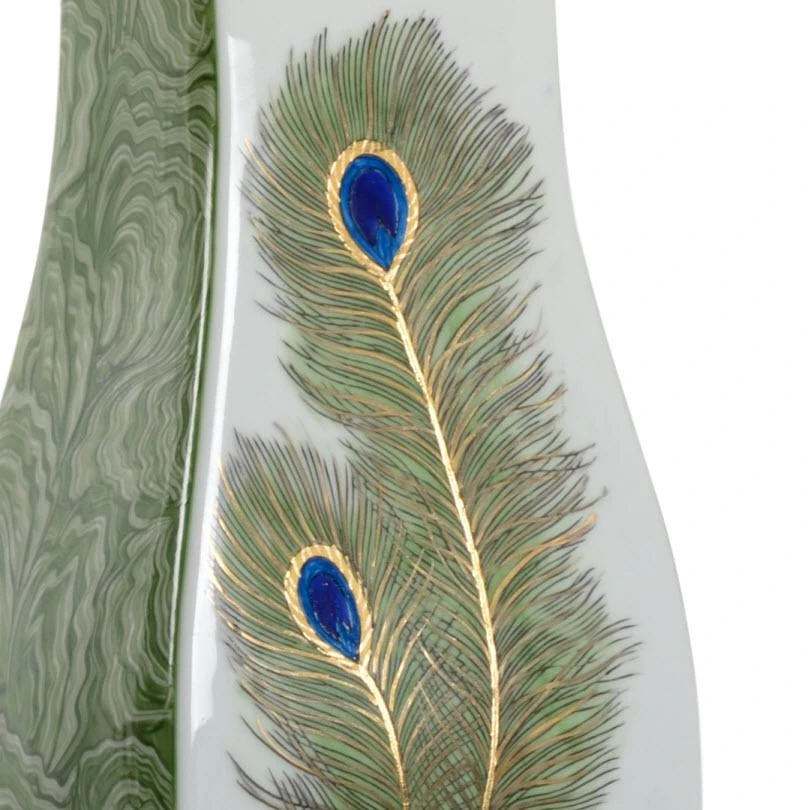 Hand Painted Ceramic Body With A Peacock Feather Design.