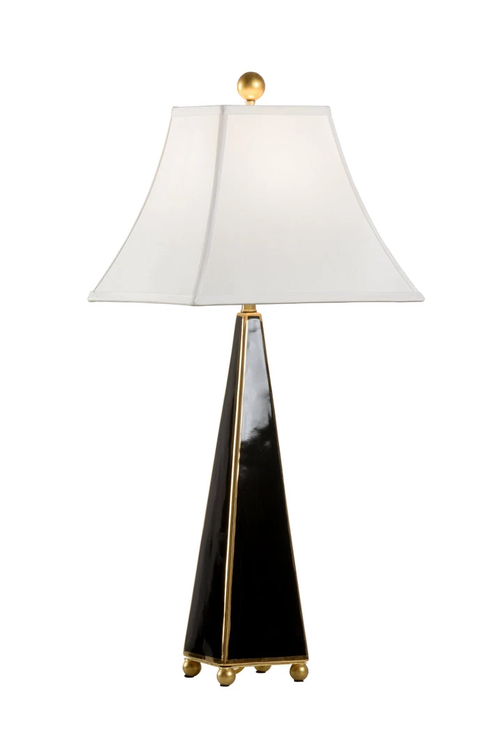 Pyramid Shaped Ceramic Lamp Hand Finished In Black And Metallic Gold On Ball Feet.